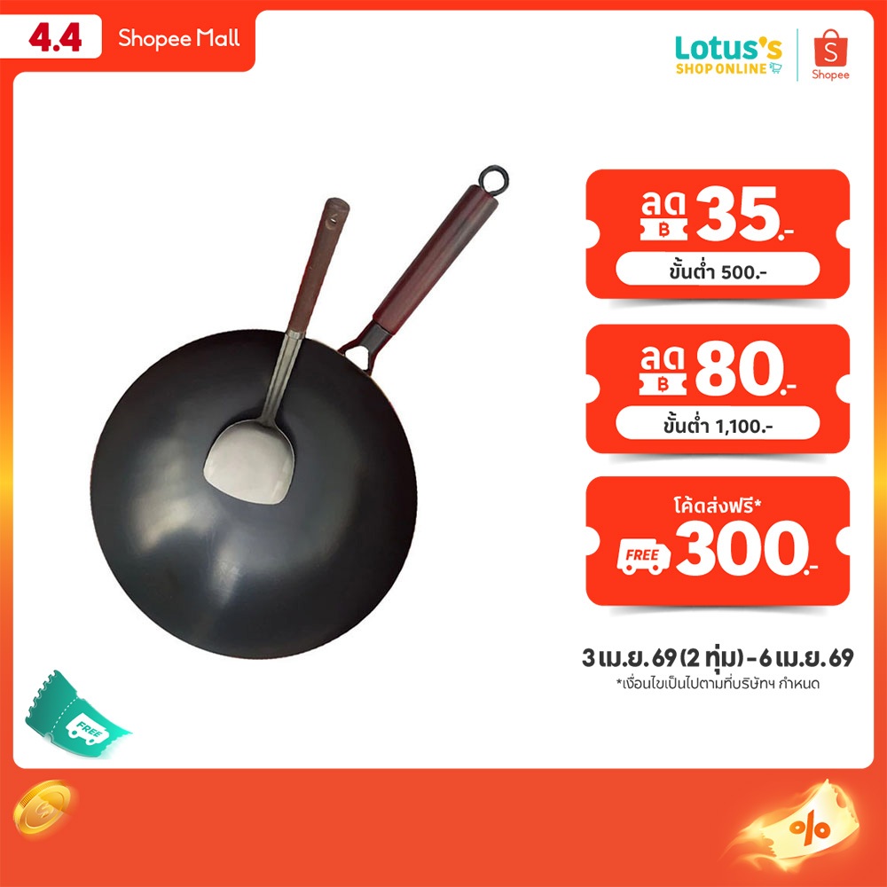 โลตัส กระทะเหล็กเผา ขนาด 32 ซม. พร้อมตะหลิว LOTUSS IRON PAN WITH WOODEN HANDLE 32 CM. AND SPATULA