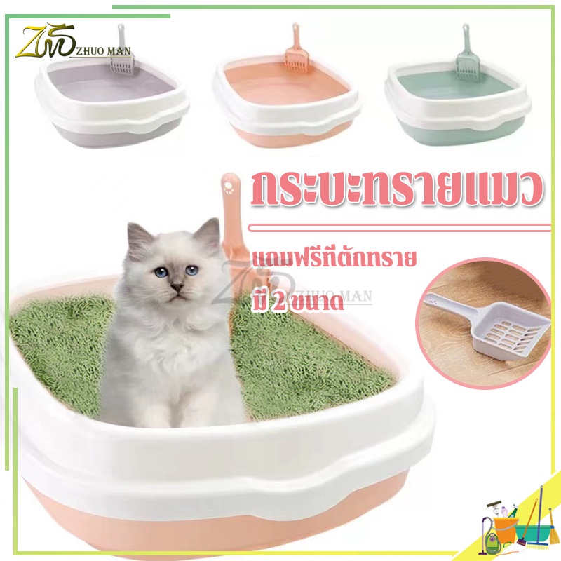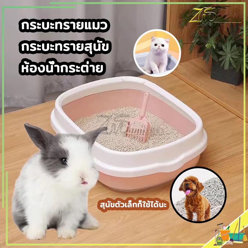 ห้องน้ำแมว กะบะทรายแมว ห้องน้ํากระต่าย กระบะทราย แถมฟรีที่ตักทราย กระบะ กระบะทรายแมว มี 2 ขนาด