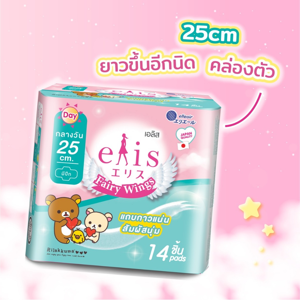 [แพ็ค 6 ] เอลิส แฟร์รี่วิงส์ กลางวันมามาก ขนาด 25 ซม. 14 ชิ้น Elis Fairy Wings 25 cm. Day Heavy Flow 14 Pcs.