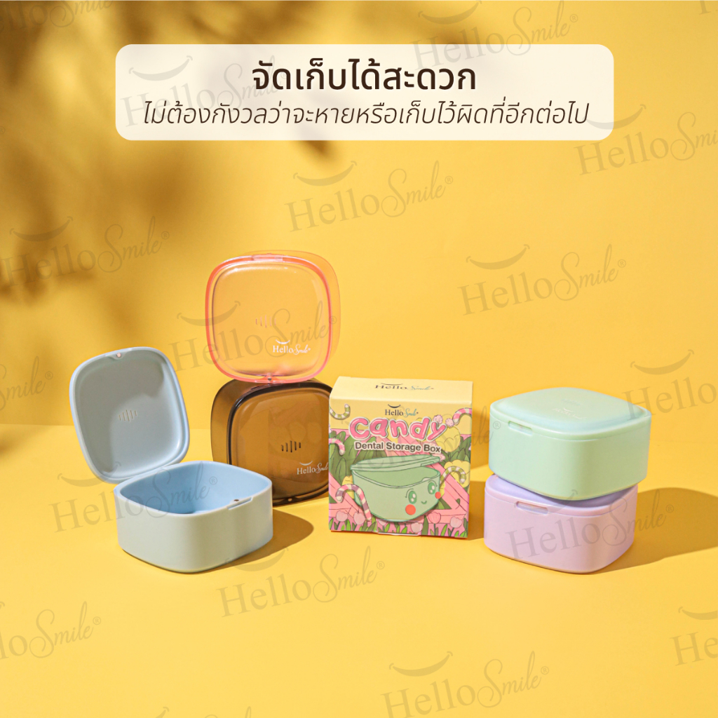 [รุ่น Candy ทรงสูง]Hellosmile Candy Box Retainer แคนดี้ กล่องใส่อุปกรณ์ ช่องปาก รีเทนเนอ ร์ รูระบาย ฟันปลอม