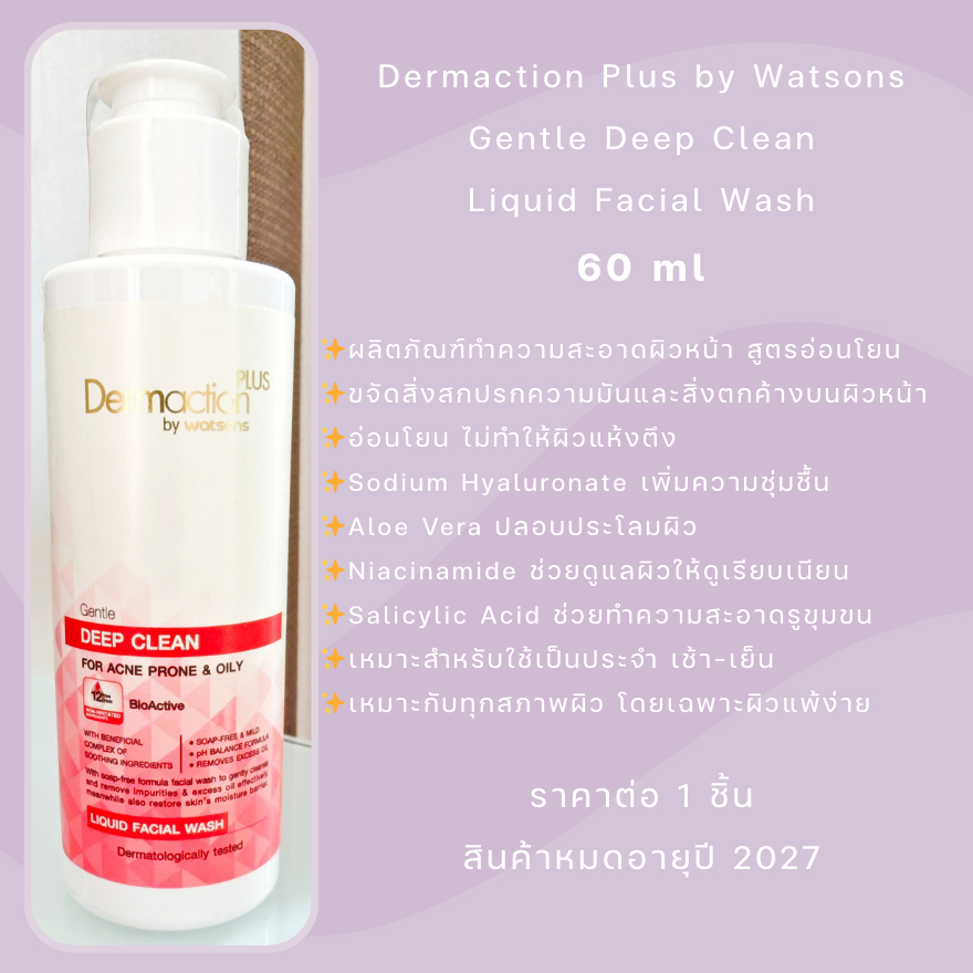 หมดอายุปี 27✨Dermaction Plus by Watsons Gentle Deep Clean Liquid Facial Wash 60 ml