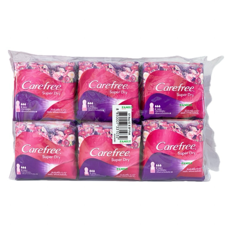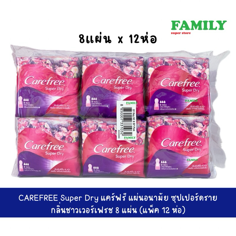 [แพค12ห่อ] Carefree แคร์ฟรี แผ่นอนามัย ซุปเปอร์ ดราย กลิ่นชาวเวอร์เฟรช (ห่อเล็ก) 8 แผ่น