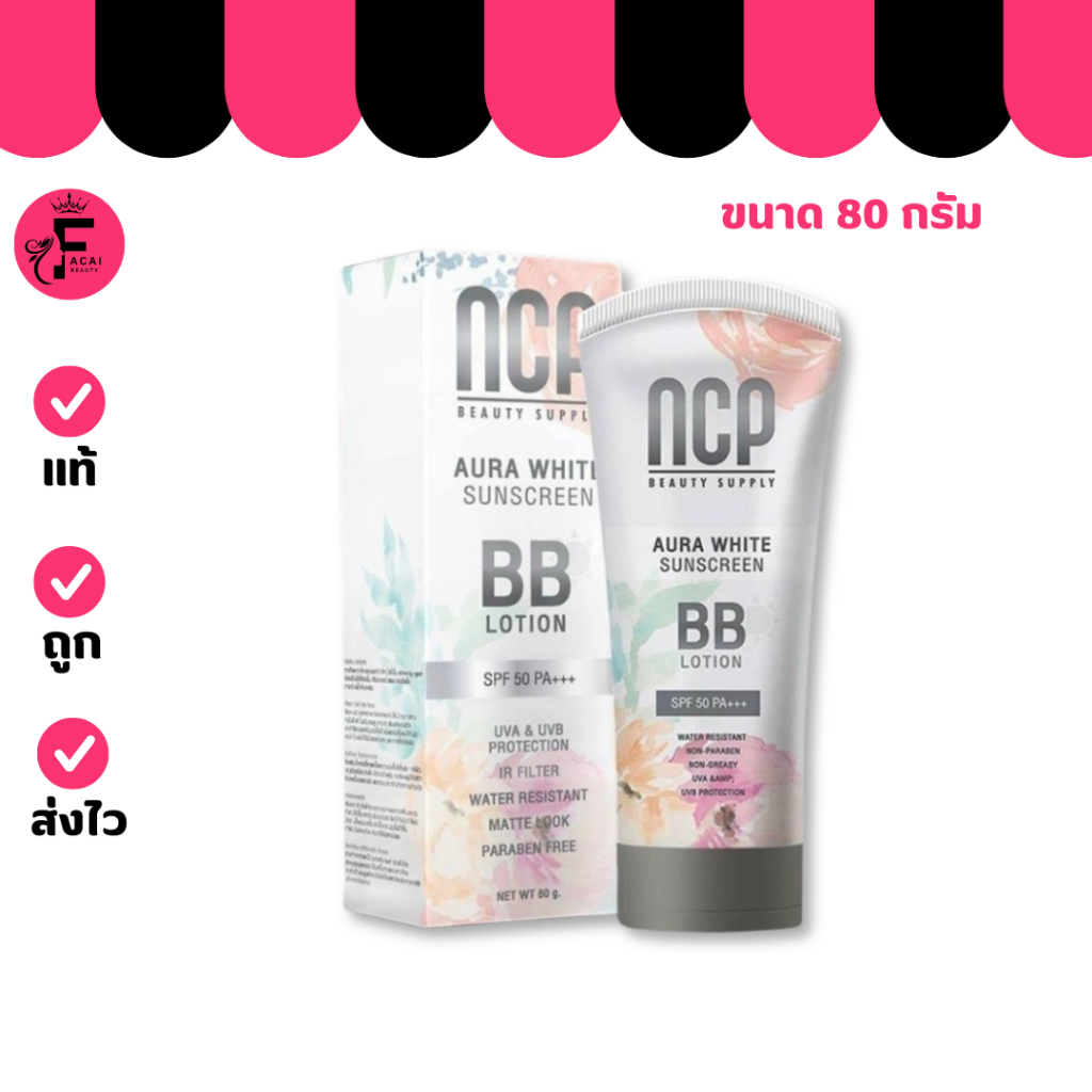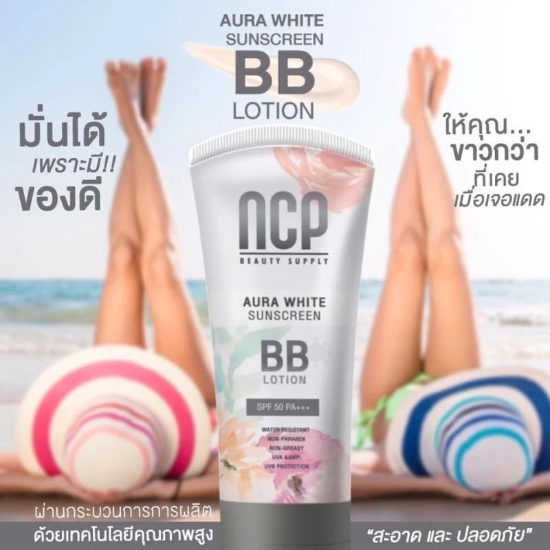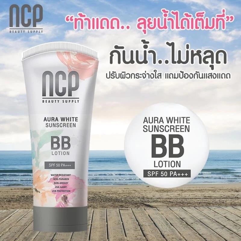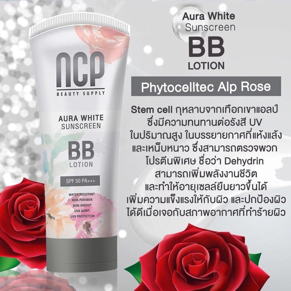 (1 หลอด) NCP Aura White Sunscreen BB Lotion เอ็นซีพี ออร่า ไวท์ ซันสกรีน บีบี โลชั่น(80 กรัม)