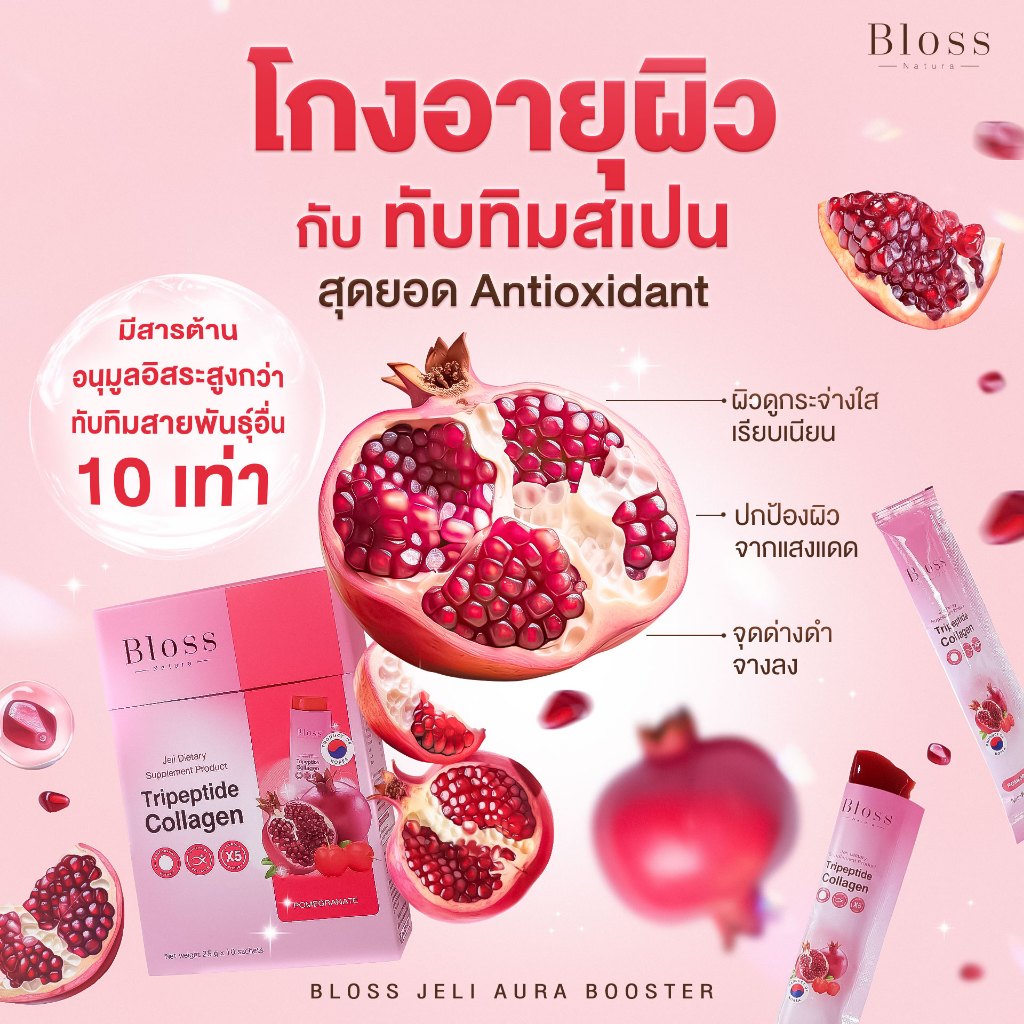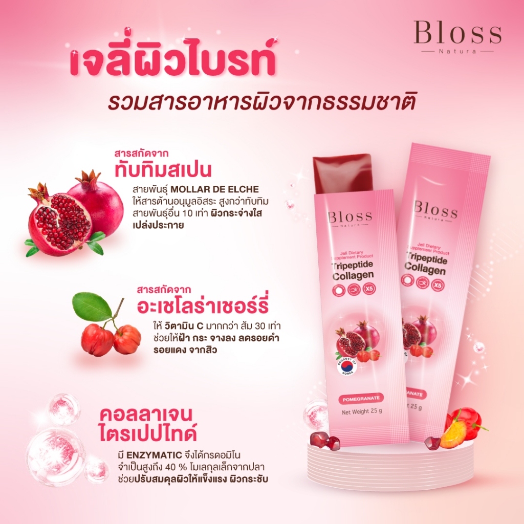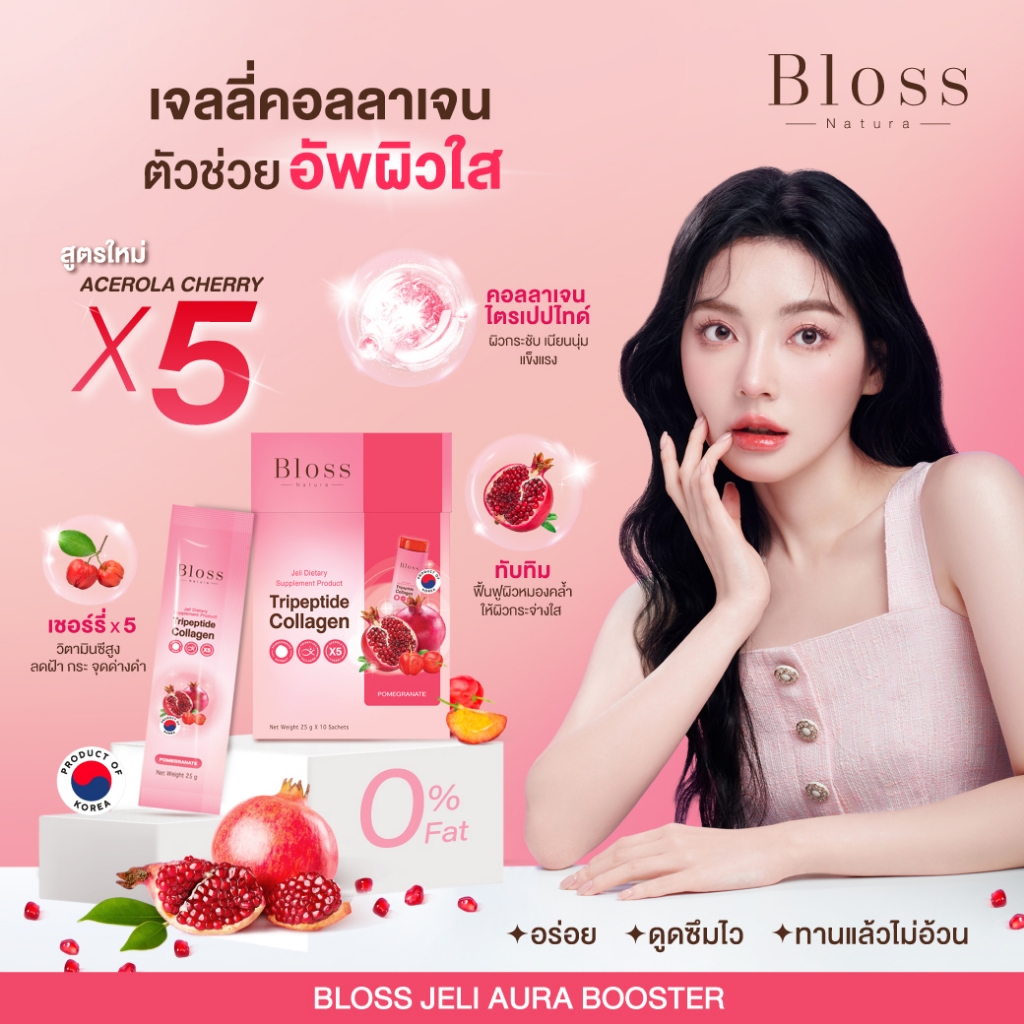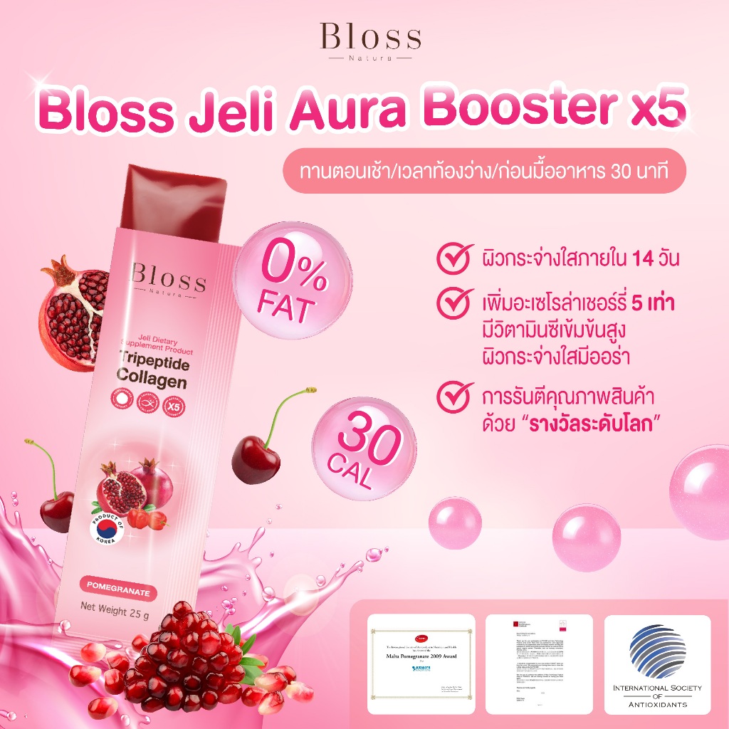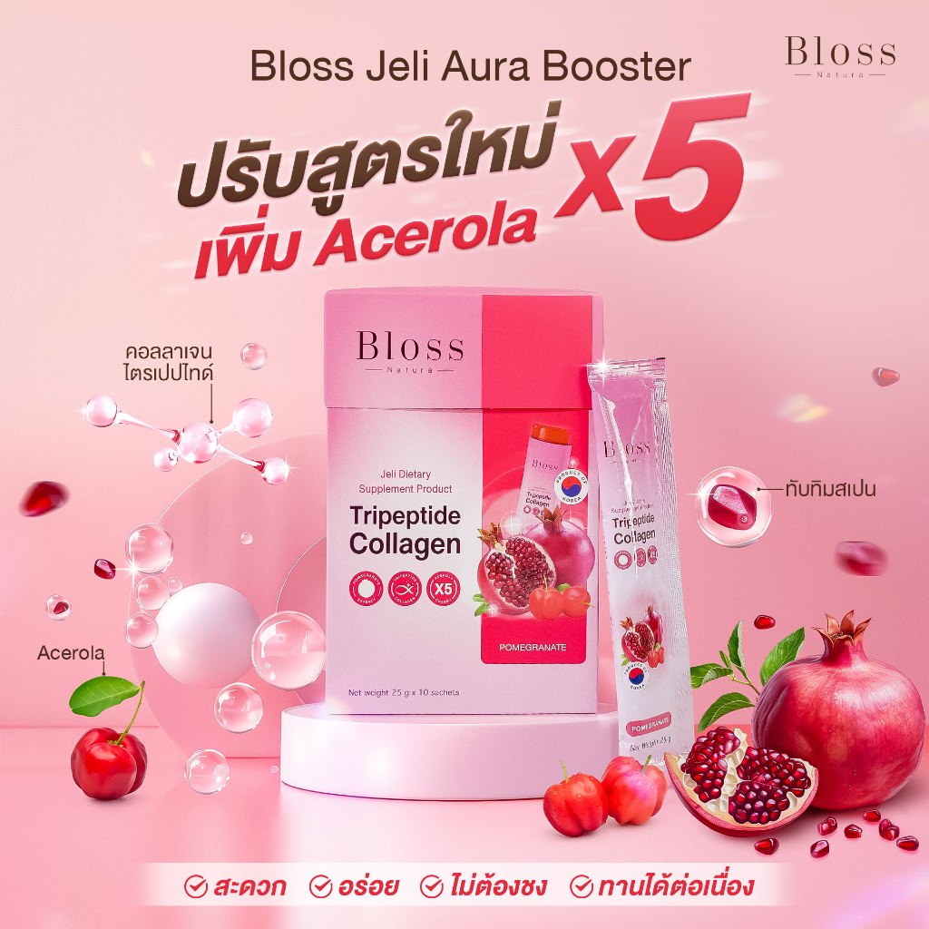 [เซ็ทสุดคุ้ม]Bloss Jeli Booster X5 เจลลี่บูสเตอร์คอลลาเจน 3 กล่อง(10 ซอง) ผิวออร่าเนียนนุ่มกระจ่างใส