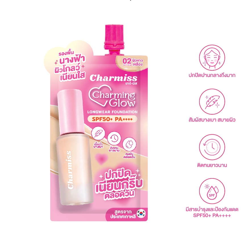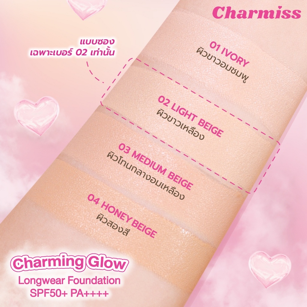 CHARMISS Charming Glow Longwear Foundation SPF50+ PA++++ 5g. ชาร์มิส ชาร์มมิ่ง โกลว์ ปกปิดเริ่ด