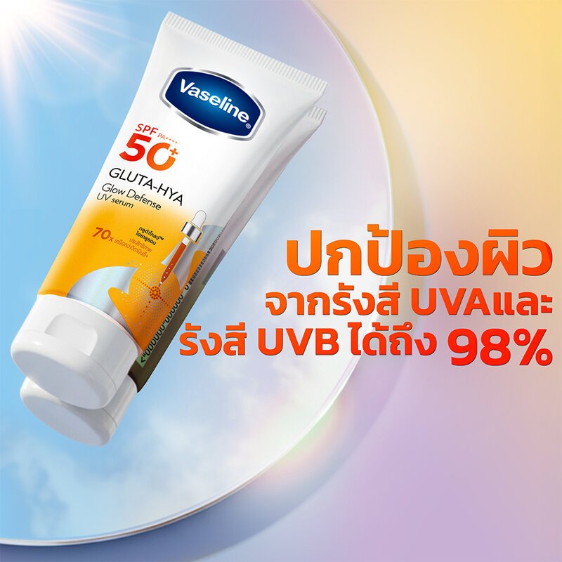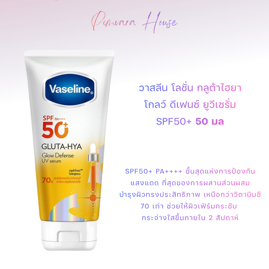 หมดอายุปี 28✨Vaseline Gluta Hya Glow Defense UV Serum SPF50+ 50ml x3 หลอดขาวเหลือง