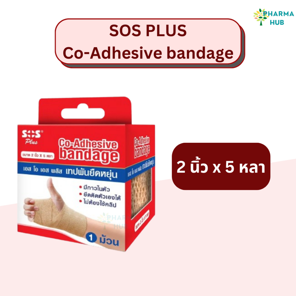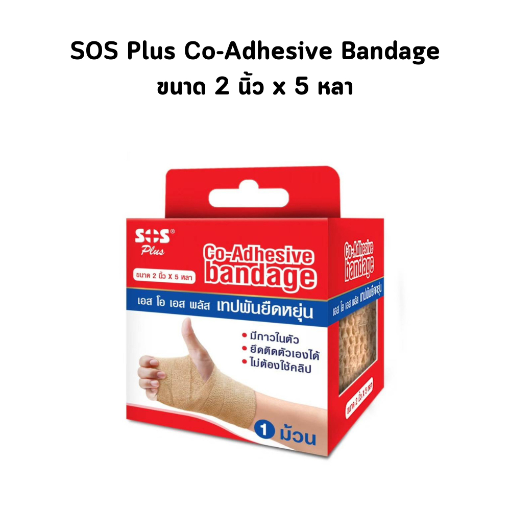SOS Plus เทปพันยืดหยุ่น แบบมีกาวในตัว ( เนื้อเดียวกับ โคแบน Coban 3M ) Co-Adhesive bandage 1 ม้วน
