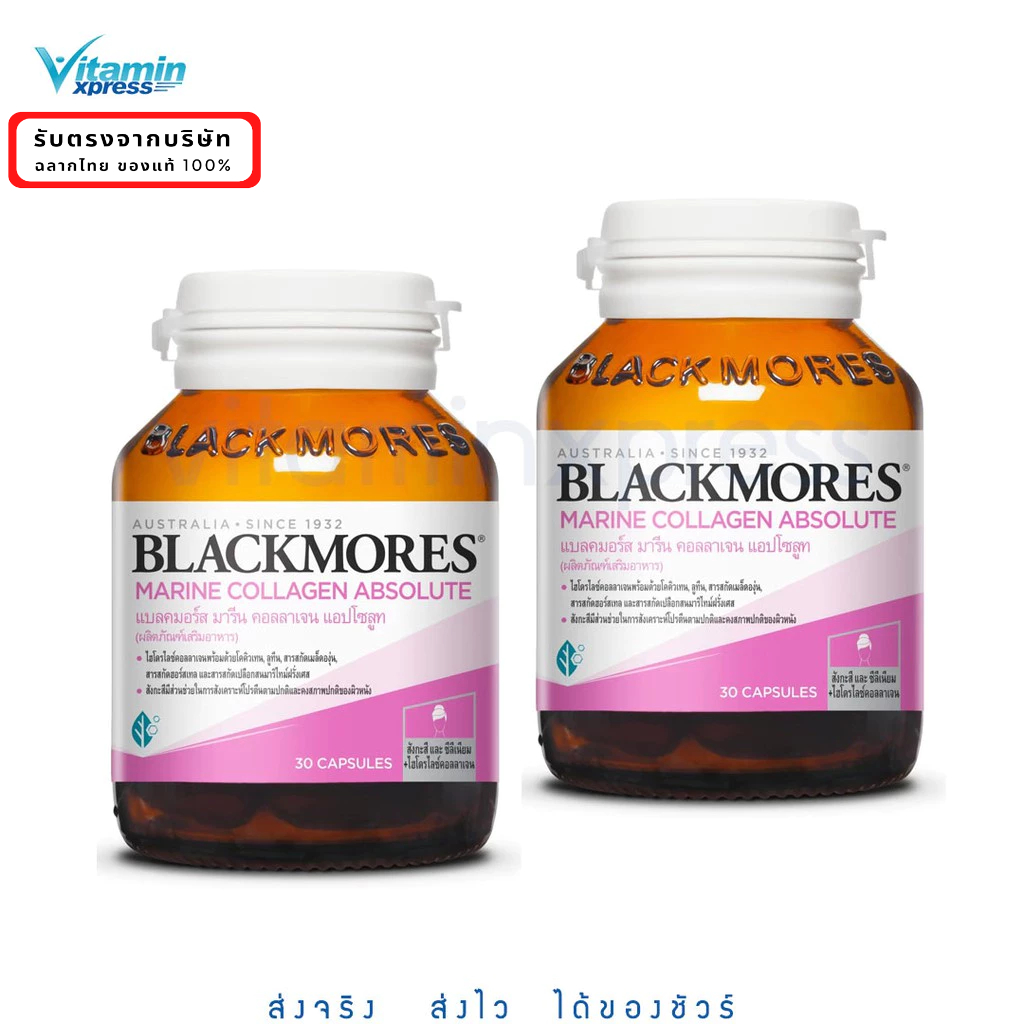 2 ขวด Exp.03/27 Blackmores Marine ABSOLUTE Q10 30 เม็ด แบลค มอร์ส มารีน คิวเทน คอลลาเจน รุ่นใหม่ แพค 2 ขวด
