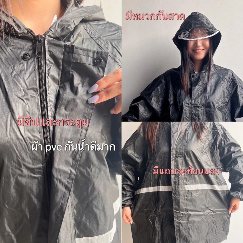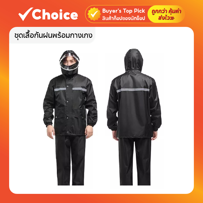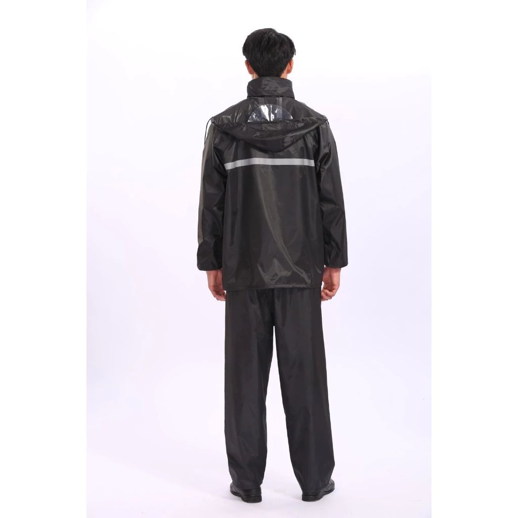 ชุดกันฝน เสื้อพร้อมกางเกง แถบสะท้อนแสง กันน้ำ กันลม สีดำ Black ไซ ซ์ 2XL ขี่มอเตอร์ไซค์