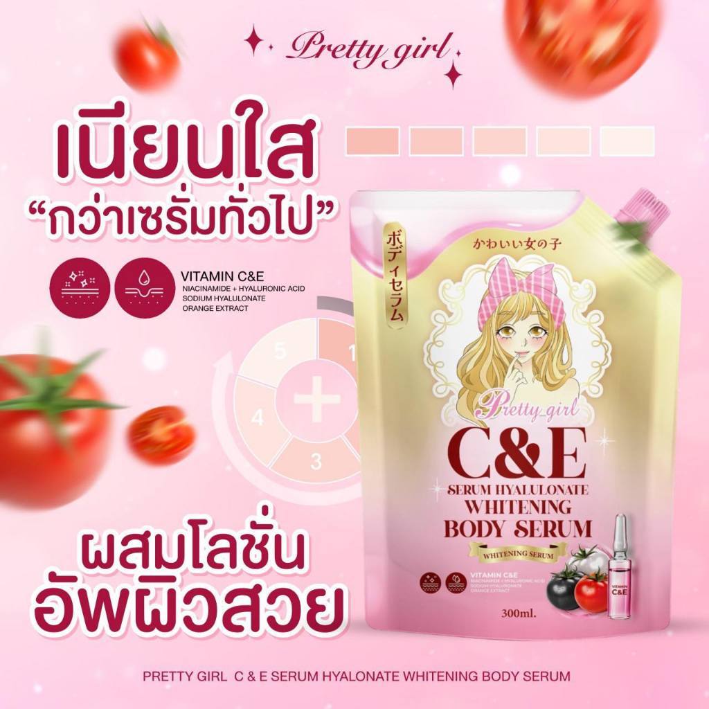 [ขนาด 300 ml.] เซรั่ม พริตตี้เกิล์ล เซรั่มกลูต้าไฮยา Pretty Girl C&E Serum ซีแอนด์อี เซรั่ม บำรุงผิวกาย ผิวขาว ออร่า