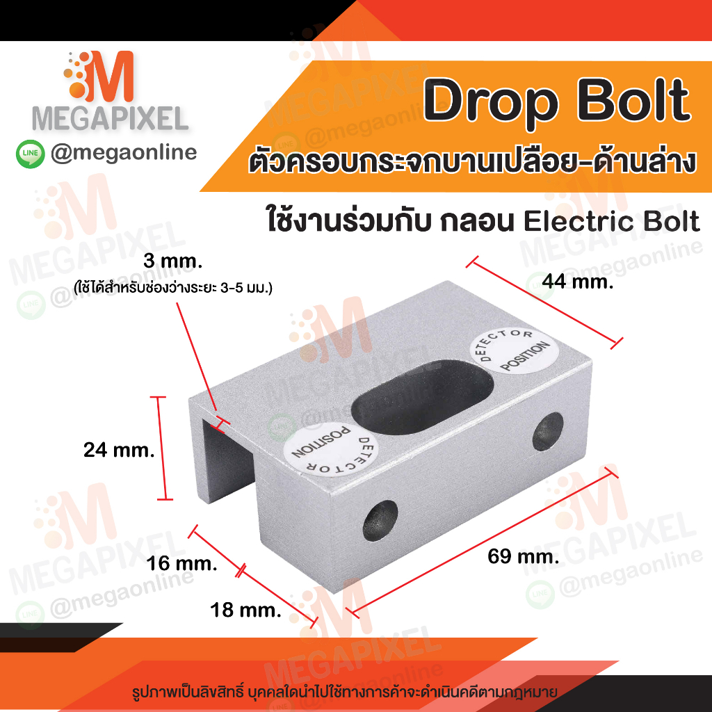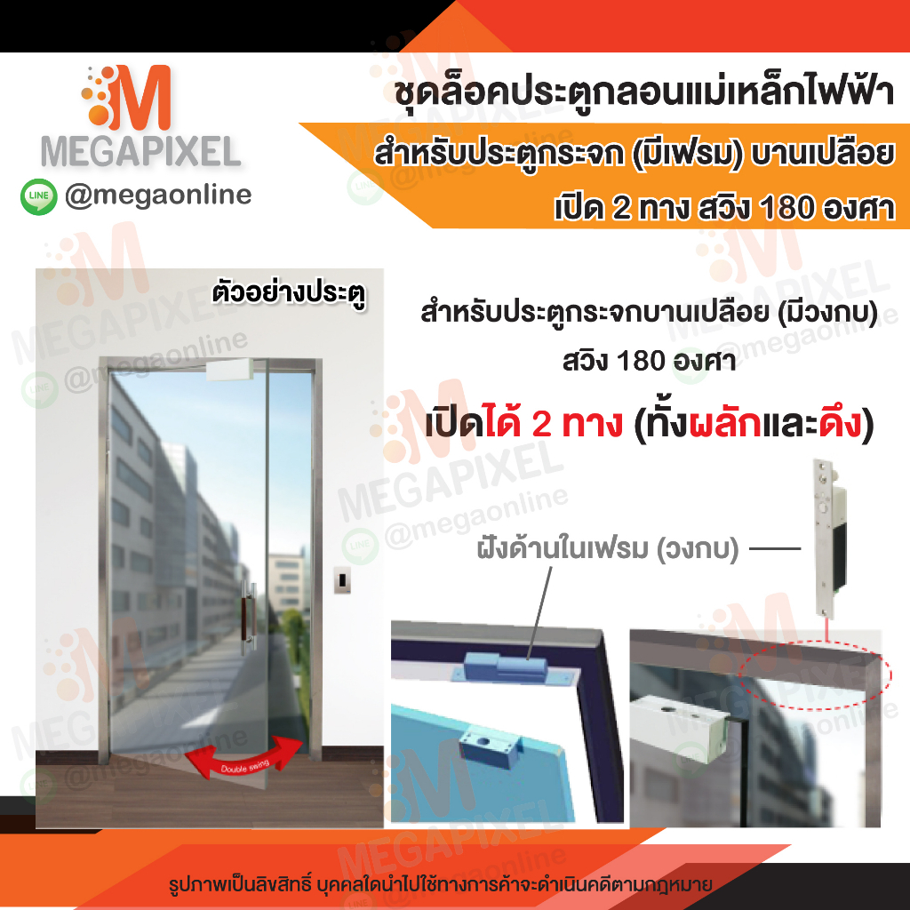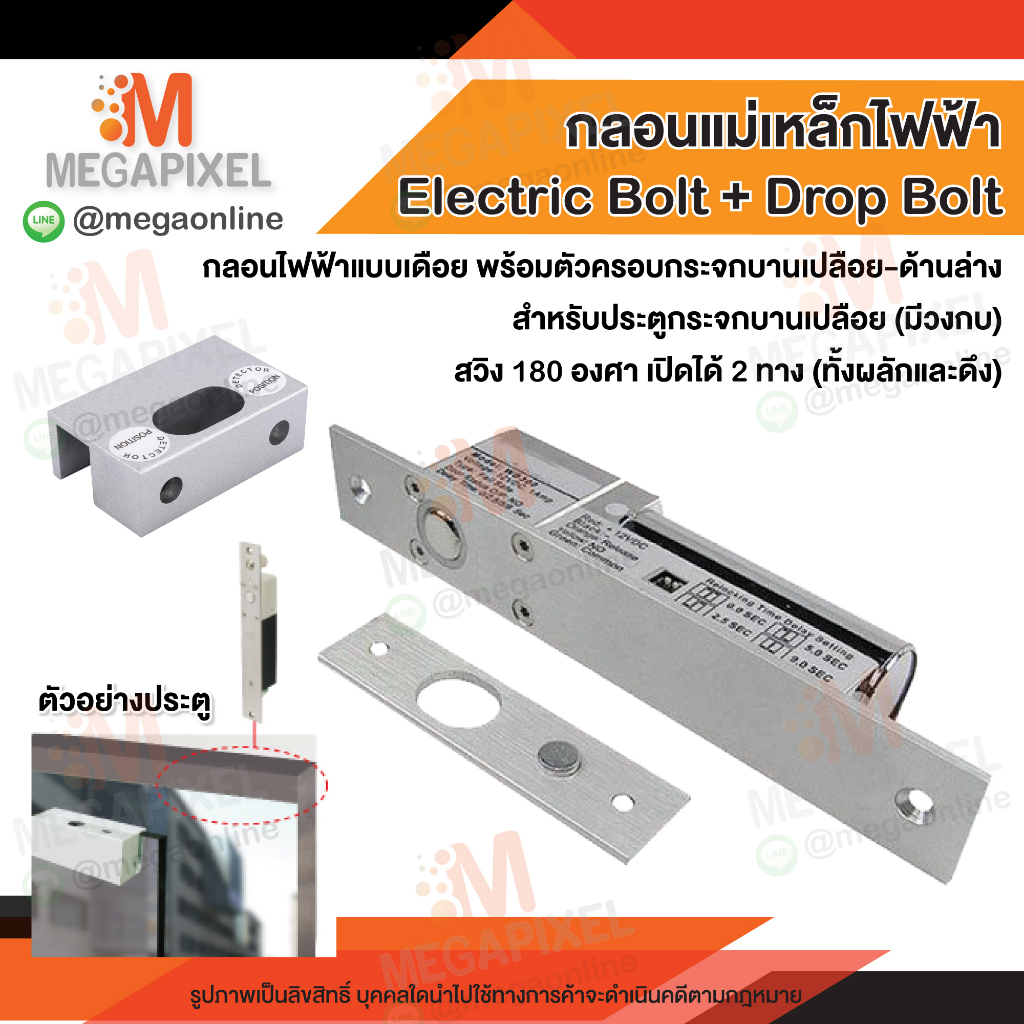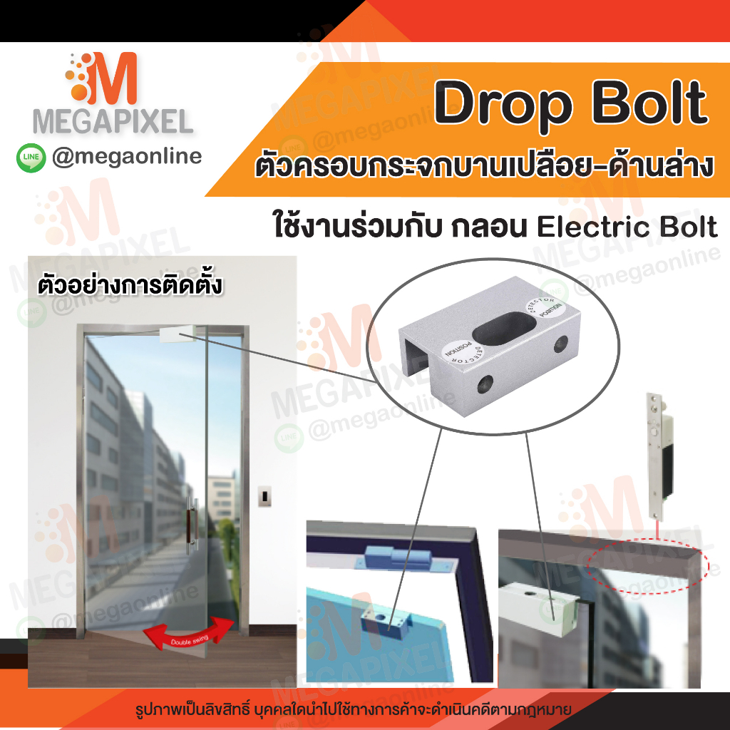TAC ชุดล็อคประตูกลอนแม่เหล็กไฟฟ้า สำหรับประตูกระจกบานเปลือย มีเฟรม สวิง2ทาง 180องศา Electric Bolt Droup bolt
