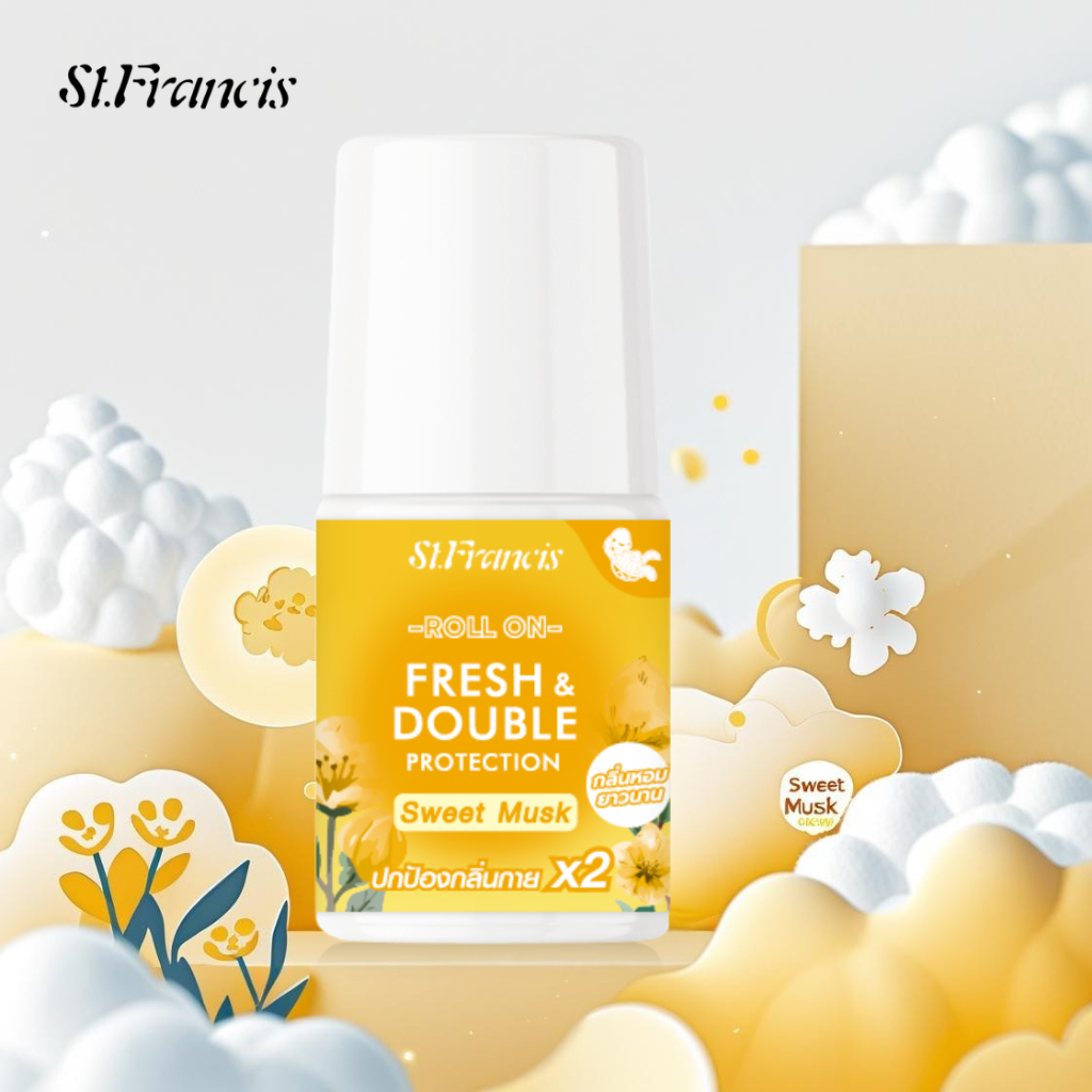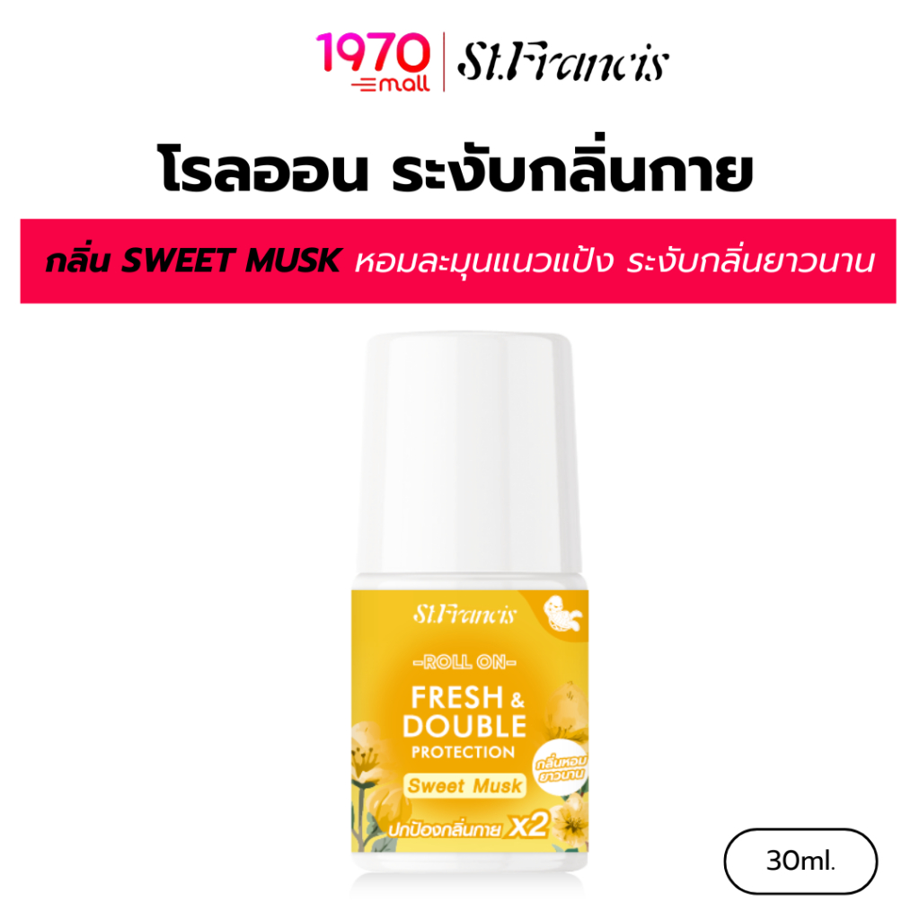 ST.FRANCIS โรลออน ระงับกลิ่นกาย กลิ่น SWEET MUSK 30ml. หอมละมุนแนวแป้ง ลดกลิ่นกายอย่างมั่นใจ