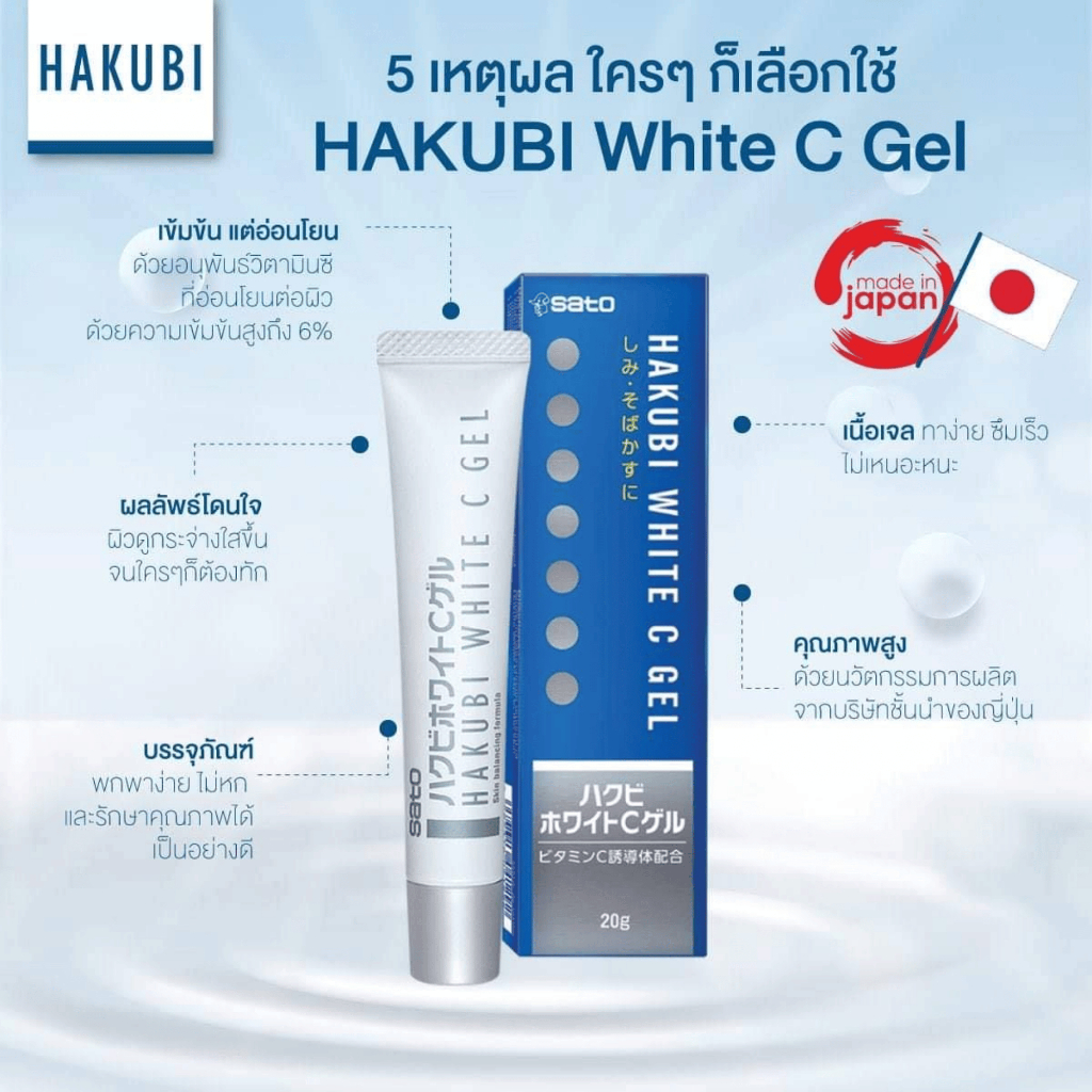 (ของแท้ สั่งจากบริษัทโดยตรง) [1แถม1] HAKUBI WHITE C GEL ฮาขุบิ ไวท์ ซี เจล เจลวิตามินซีเข้มข้น บรรจุ 20 กรัม