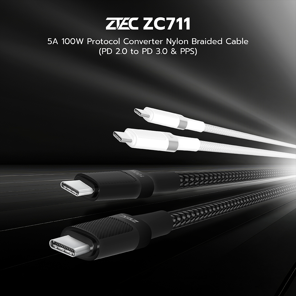 [ลดเหลือ 262] ZTEC ZC711 สายชาร์จ Ai Charging 100W แปลงเทคโนโลยีชาร์จเร็ว PD2.0 เป็น PD3.0 / PPS -2Y