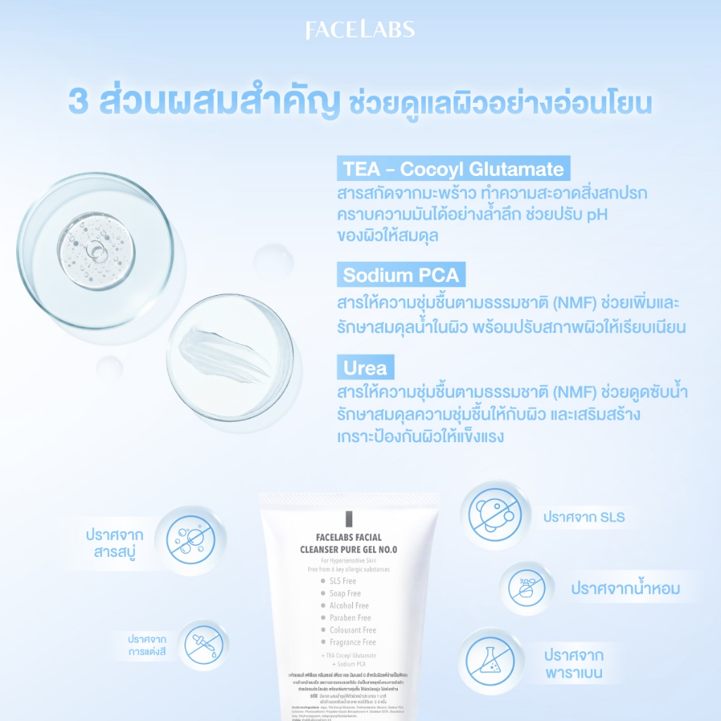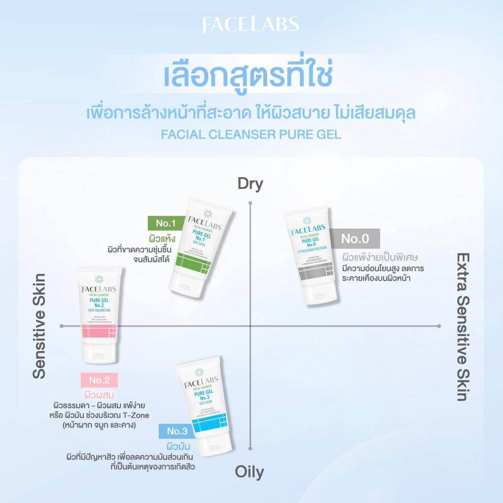 [ขายดี] เจลล้างหน้า ผิวแพ้ง่าย FACELABS Cleanser Pure Gel 50ml คลีนเซอร์ผิวแพ้ง่าย เลือกตามสภาพผิว ผิวแห้ง ผิวผสม ผิวมัน