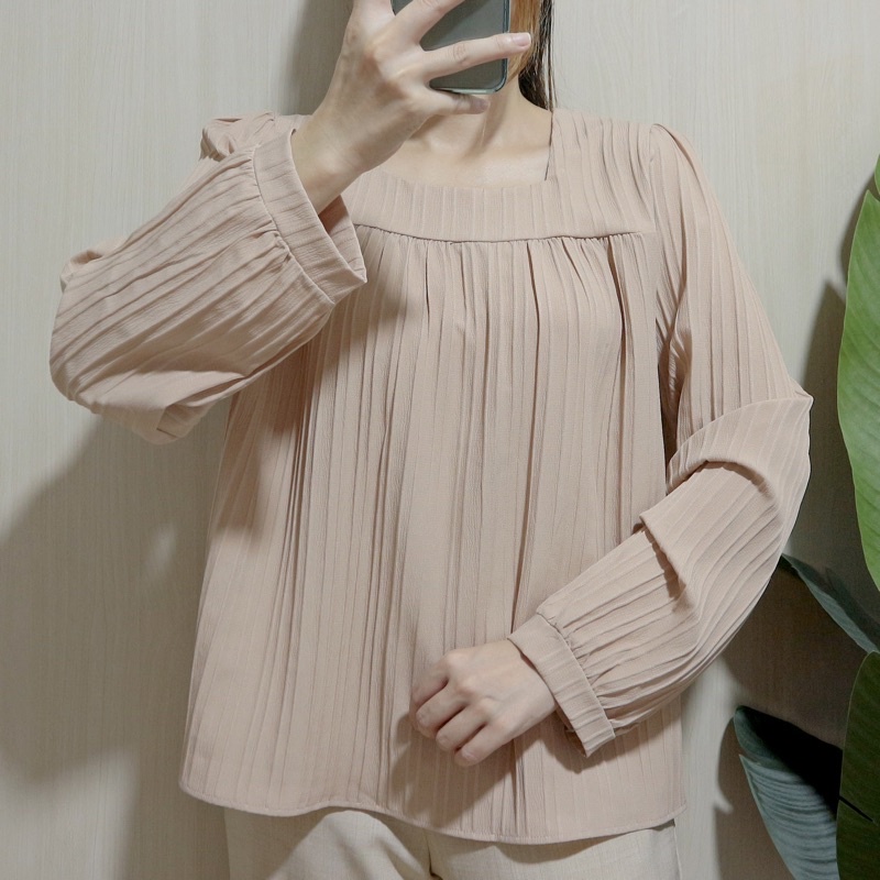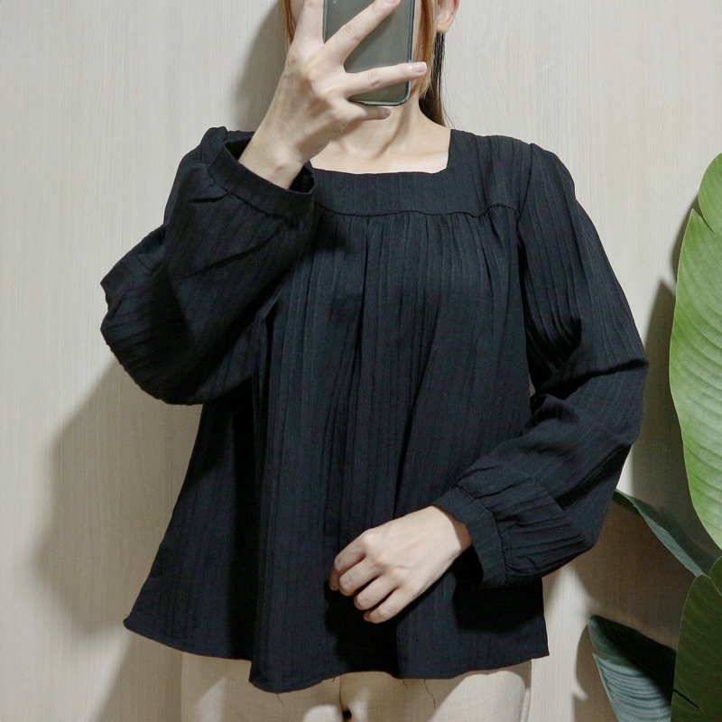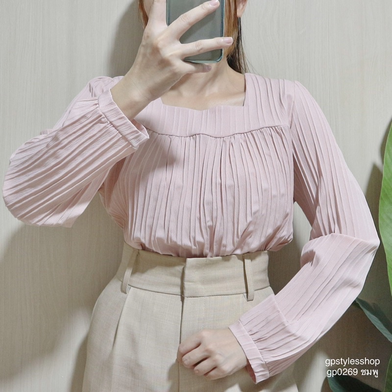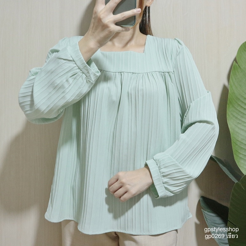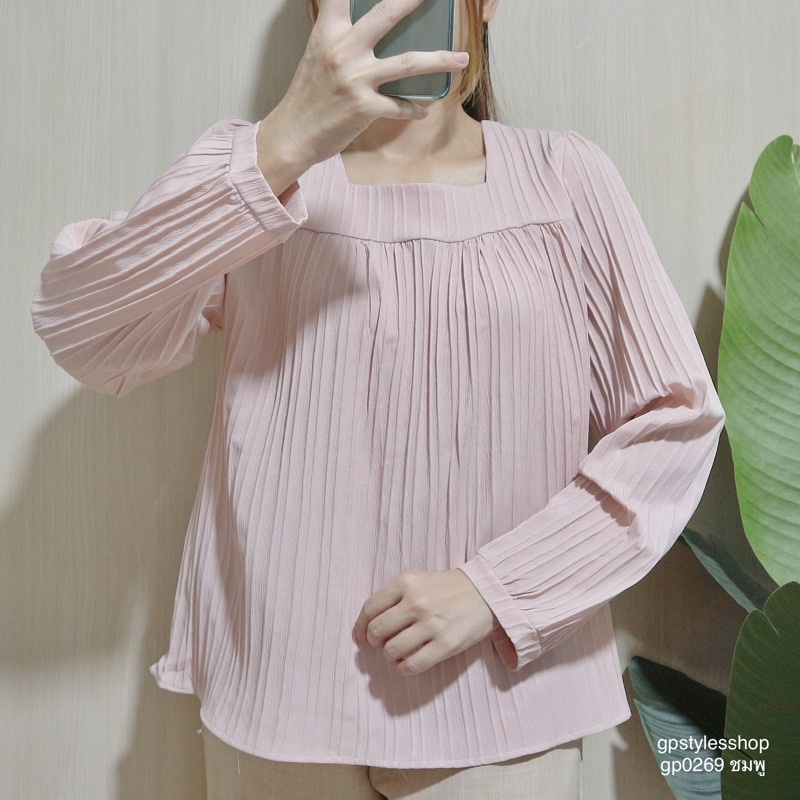 gp-0269 เสื้อคอเหลี่ยมผ้าอัดร่องงานเรียบๆน่ารักใส่สบายมาก