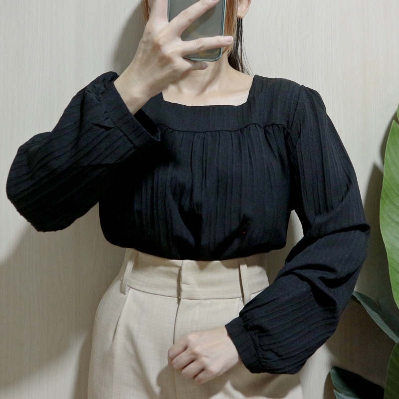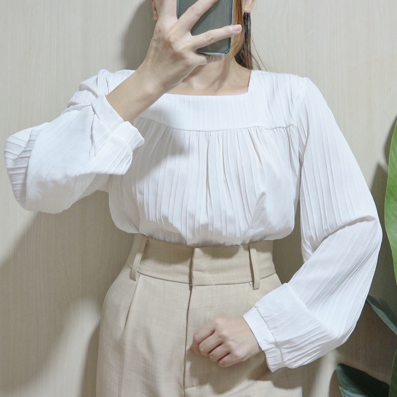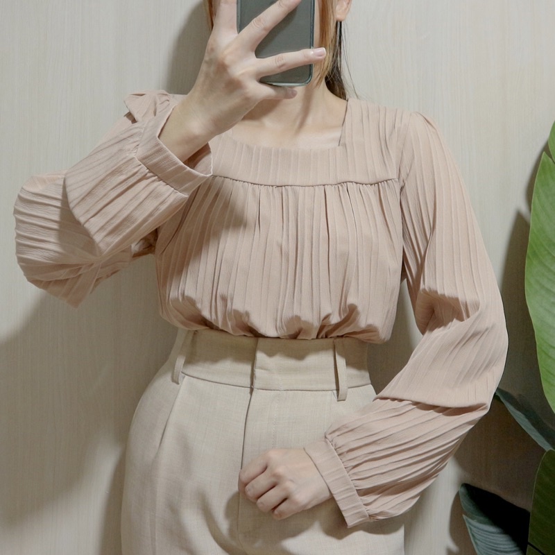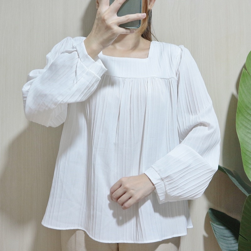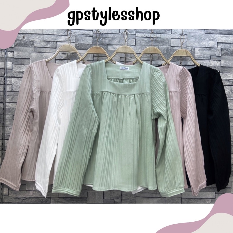 gp-0269 เสื้อคอเหลี่ยมผ้าอัดร่องงานเรียบๆน่ารักใส่สบายมาก
