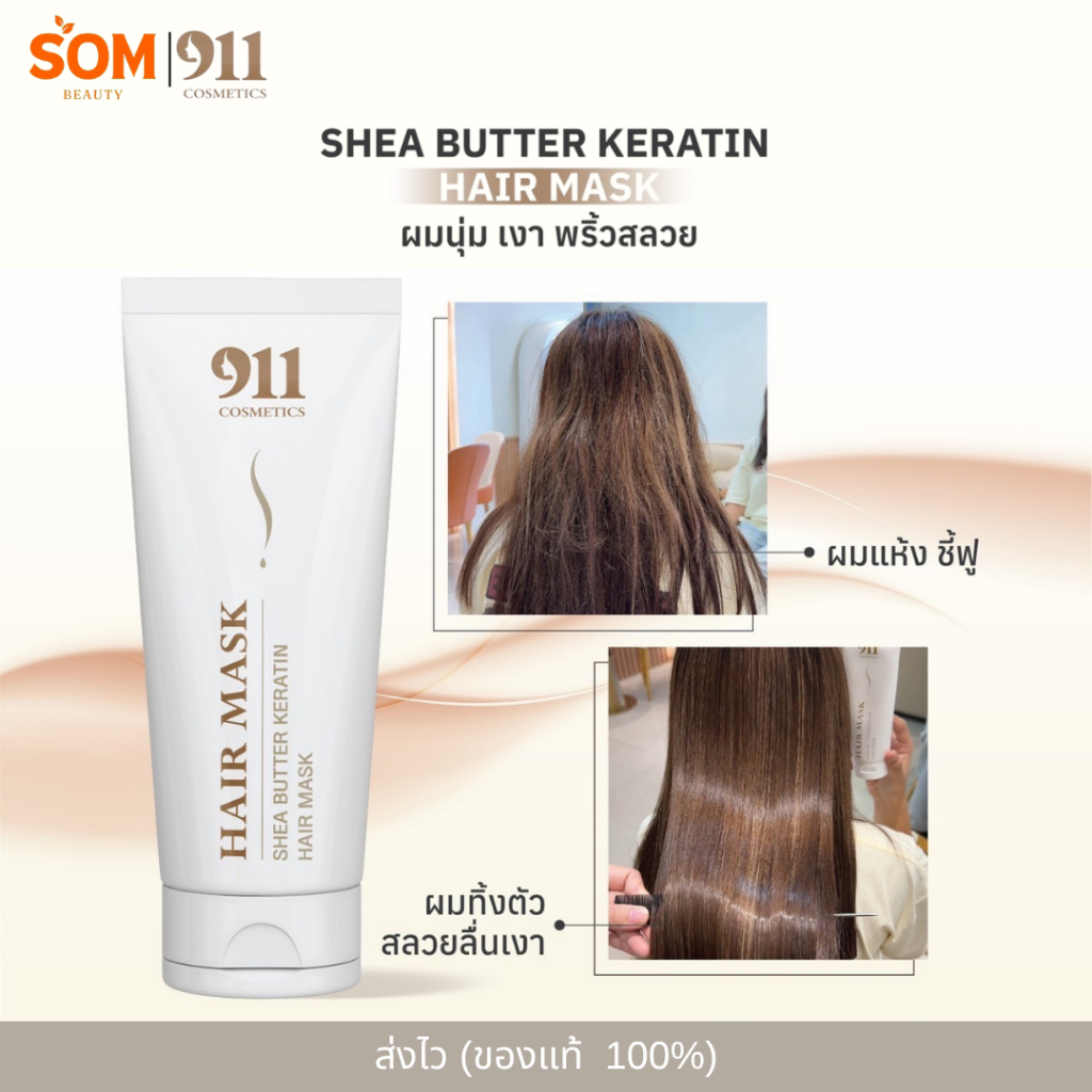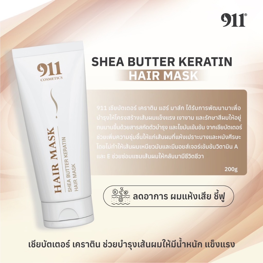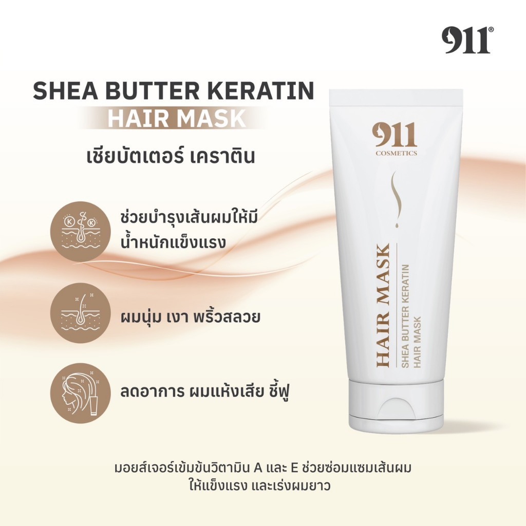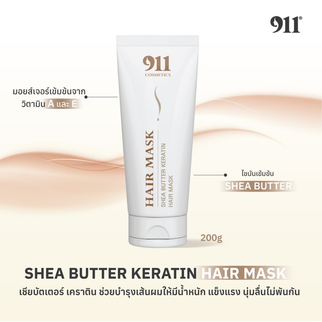 【พร้อมส่ง】911 Shea Butter Keratin Hair Mask เคราติน แฮร์ มาส์ก ผมแข็งแรง เงางาม รักษาสีผมให้ติดทน 200g.