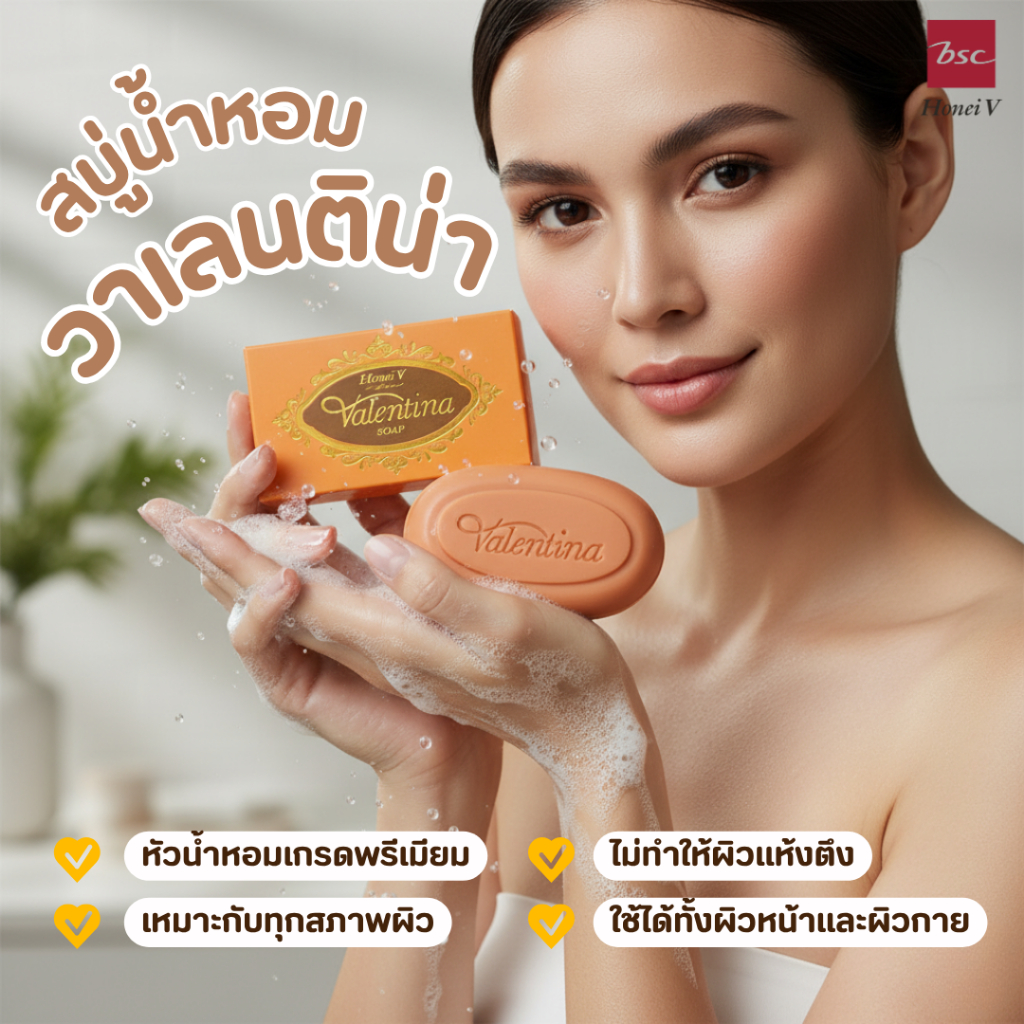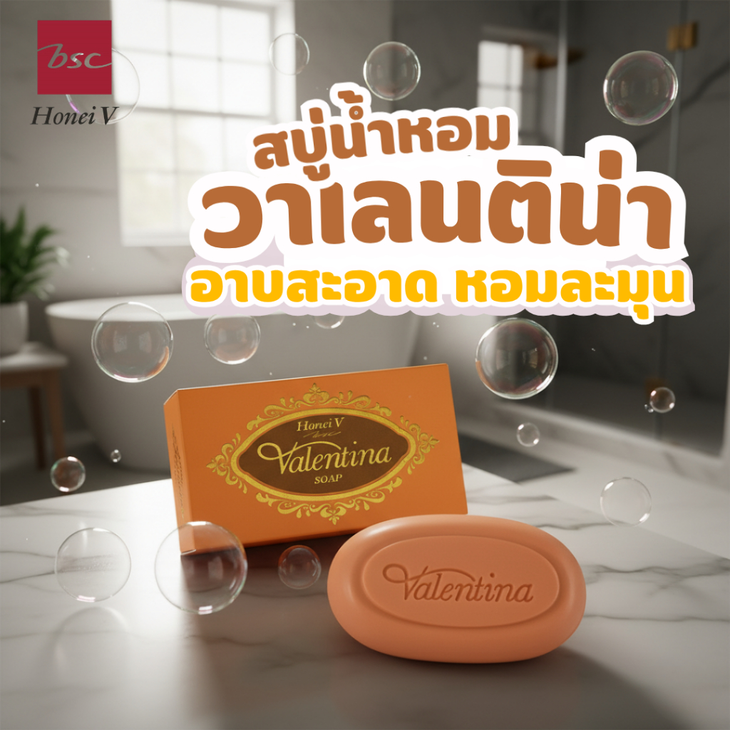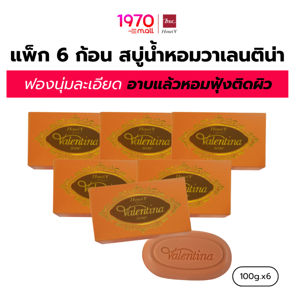 [CLEARANCE] [แพ็ก 6 ก้อน] HONEI V BSC สบู่น้ำหอม VALENTINA SOAP 100g. อาบสะอาด ใช้ได้ทั้งผิวหน้าและผิวกาย