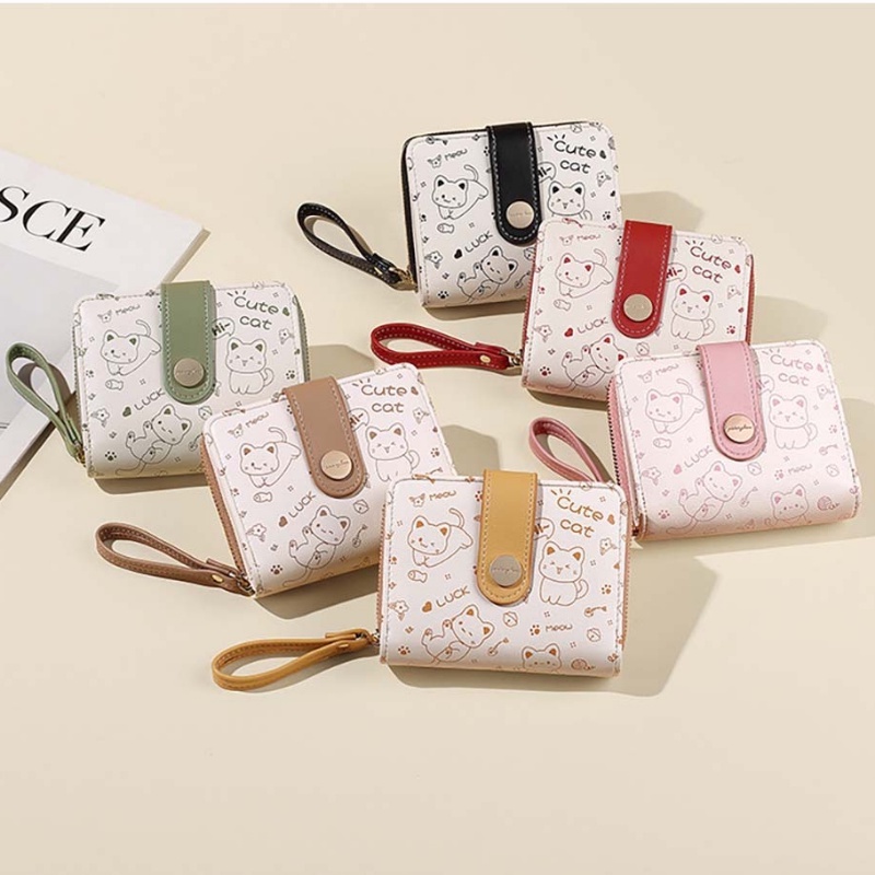 ใหม่ กระเป๋าสตางค์ใบสั้น มีซิป ลายแมวน่ารัก สไตล์เกาหลี สําหรับสตรี YUE