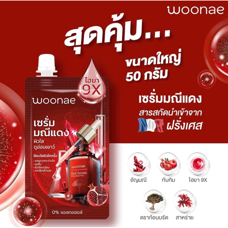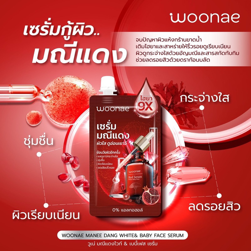 วูเน่ มณีแดง ไวท์ & เบบี้ เฟส เซรั่ม (แบบซอง)