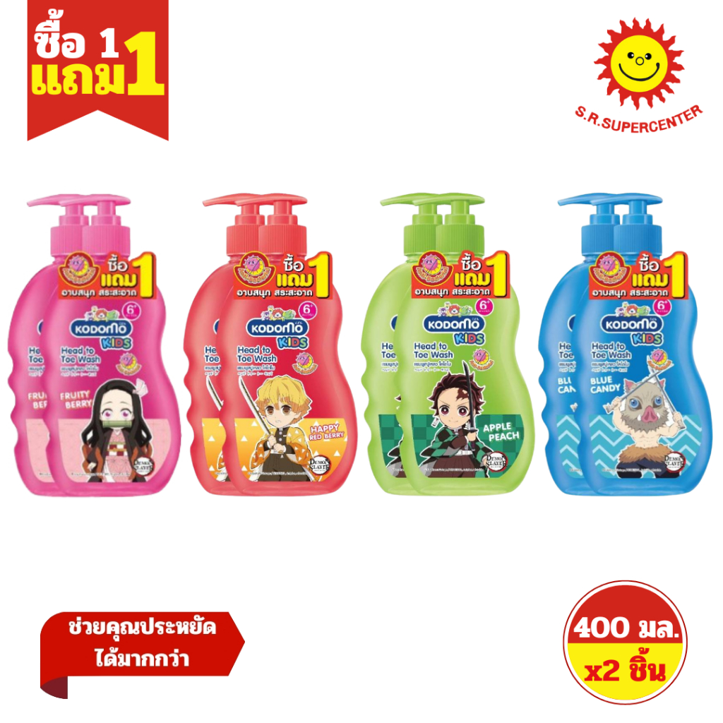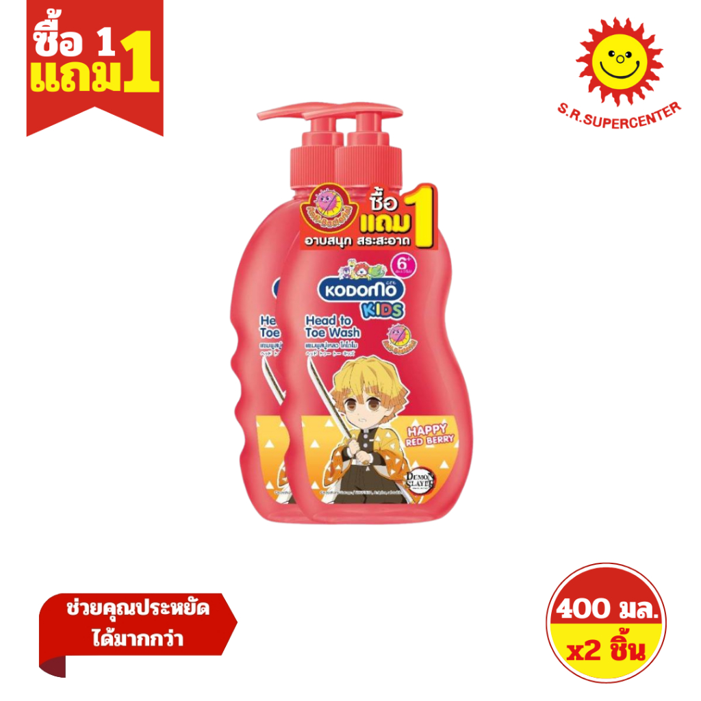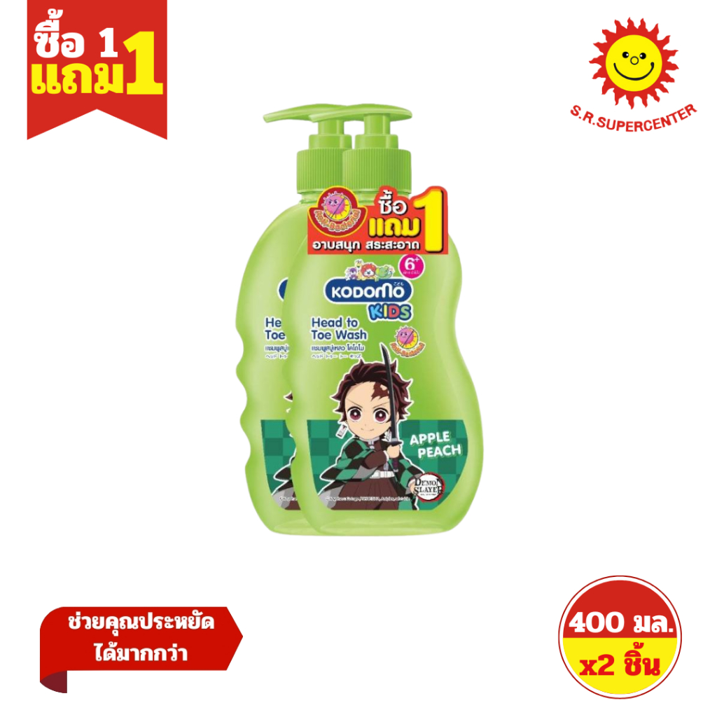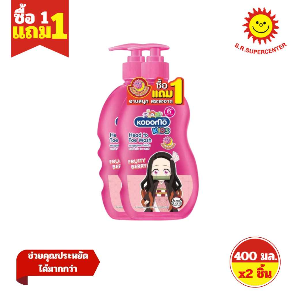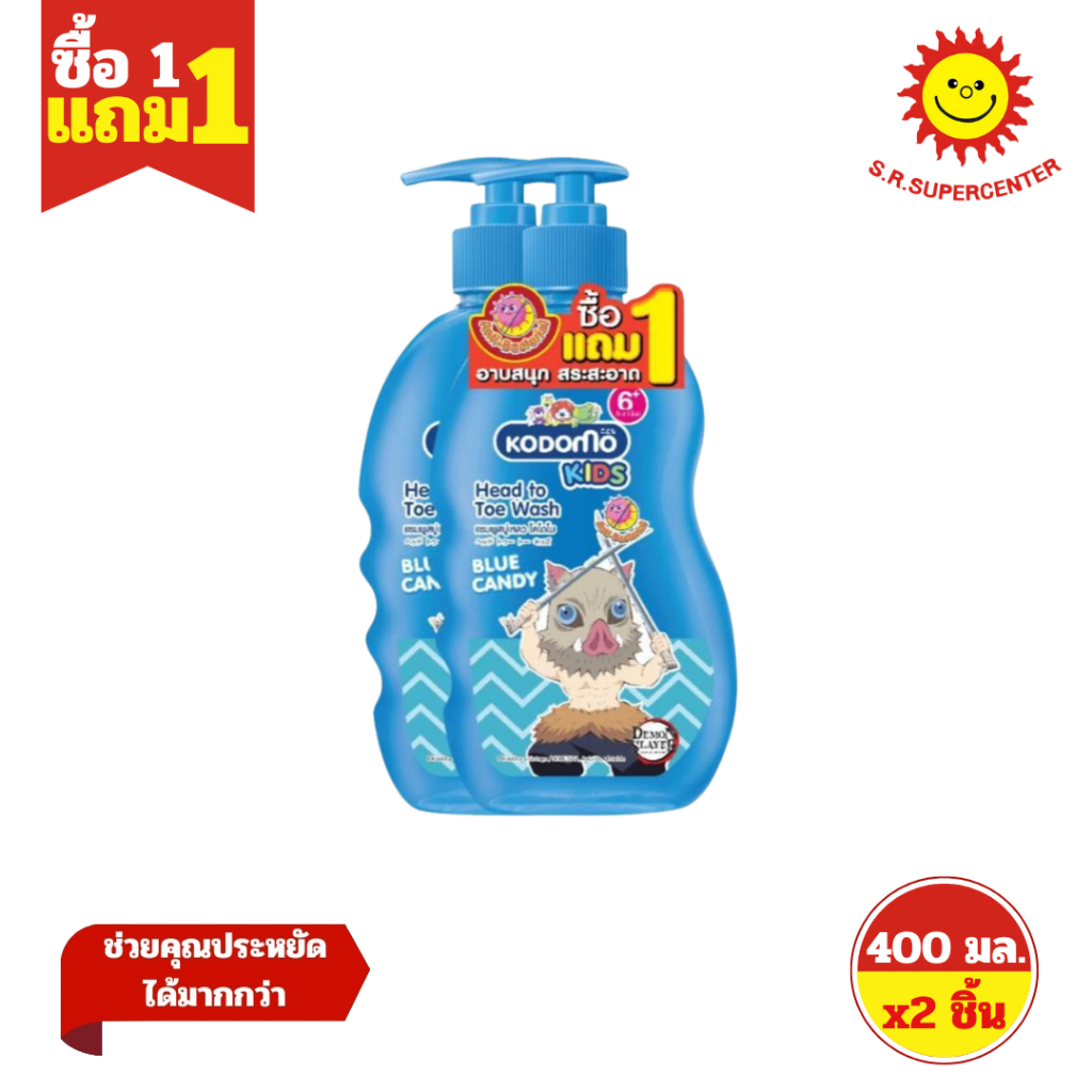 [ 1แถม1 ] Kodomo โคโดโม เฮดทูโท คิดส์ ผลิตภัณฑ์ทำความสะอาดผิวและเส้นผม ขนาด 400 มล.