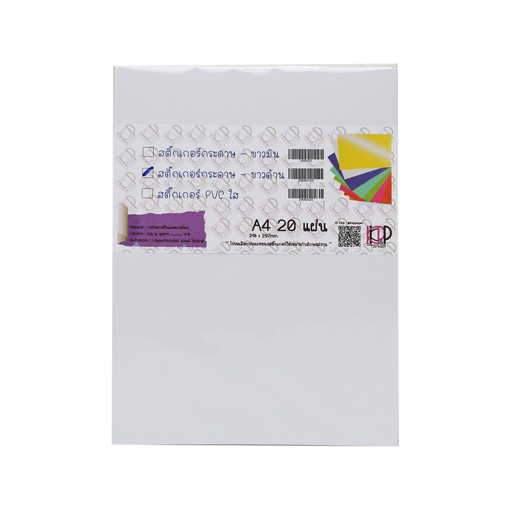 KKP&P สติ๊กเกอร์กระดาษ A4 สีขาวด้าน (แพ็ค 20 แผ่น) |ZWG|