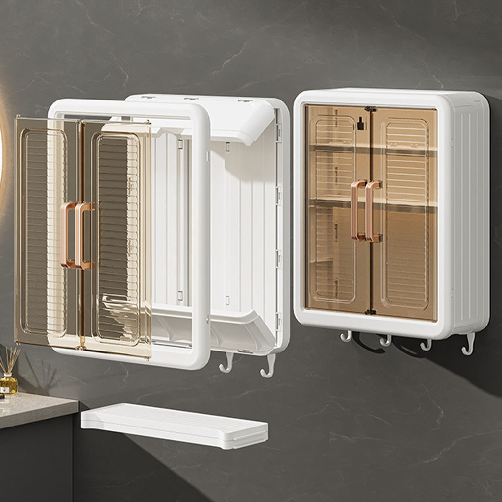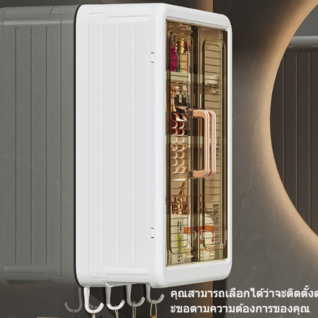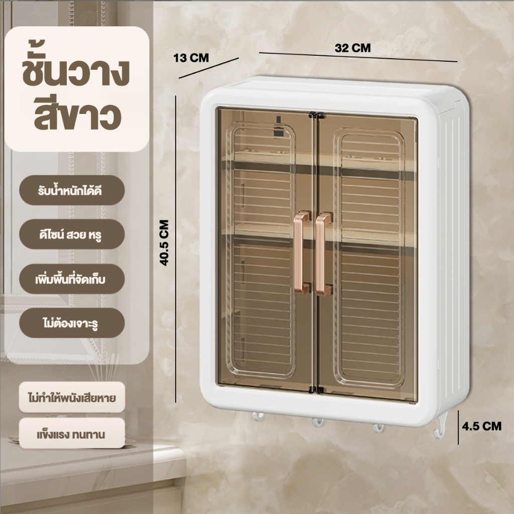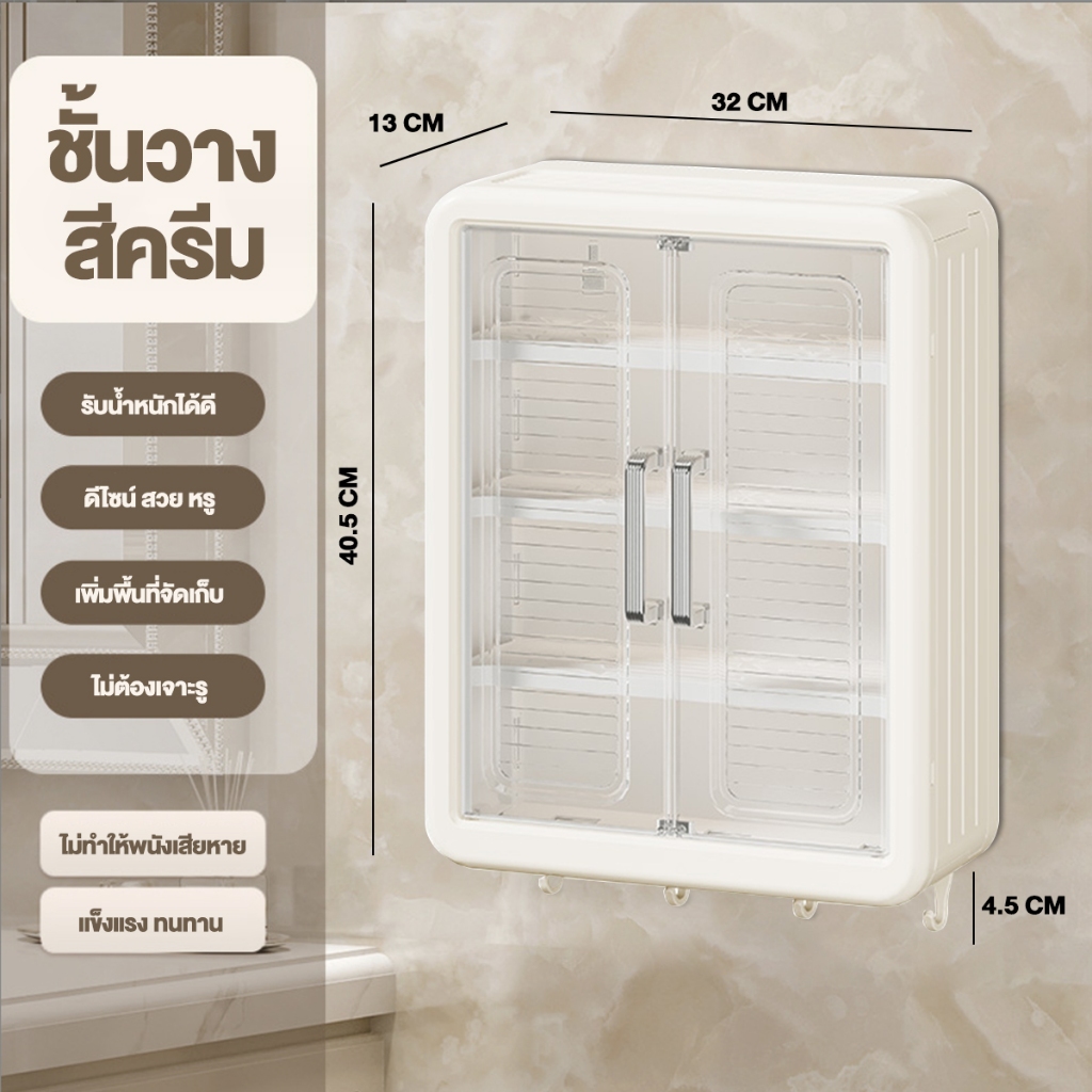 สามชั้น ตู้ติดผนังสี่เหลี่ยม กล่องเก็บของ ชั้นวางห้องน้ำ ชั้นวาง เก็บเครื่องสำอาง แผ่นกาว ไม่เจาะผนัง