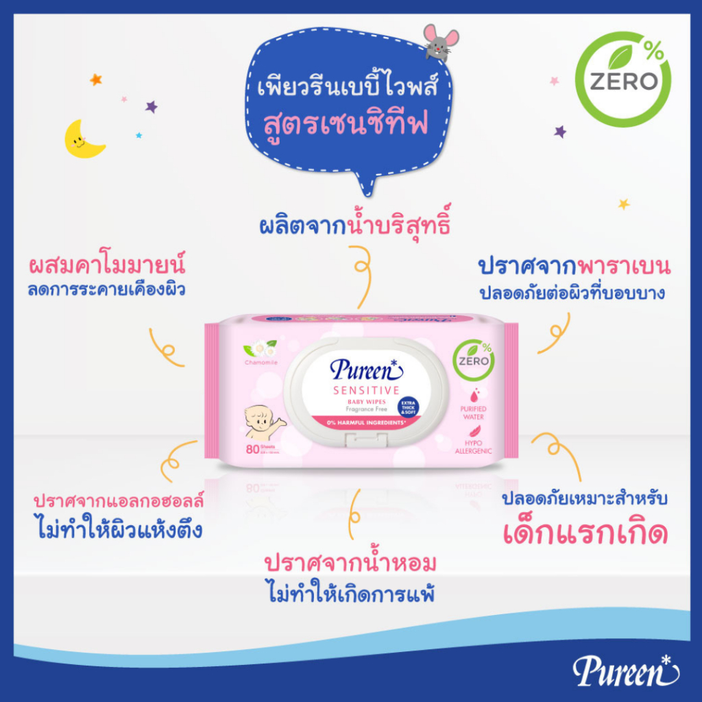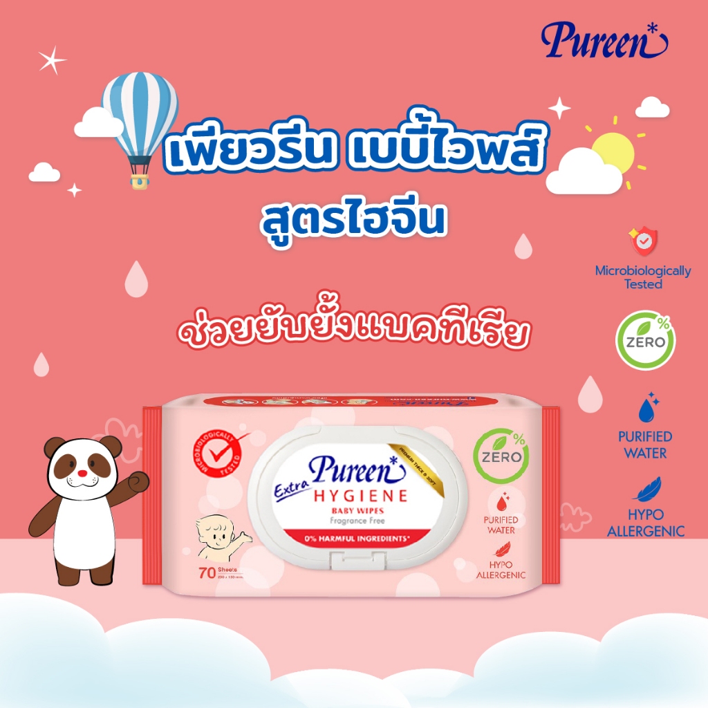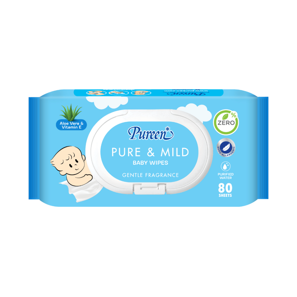 Pureen ทิชชู่เปียก เพียวรีน เบบี้ไวพ์ ทิชชู่เปียกเด็ก สูตรอ่อนโยน ผลิตจากน้ำบริสุทธิ์ (ตัวลเือก 4 สูตร / 1 ห่อ)