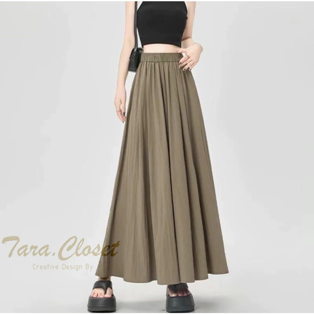 COM523 TARA กางเกงกระโปรงขายาว เอวยางยืด มีกระเป๋าข้าง ผ้าไหมครัช ใส่สบาย ไม่ต้องรีด