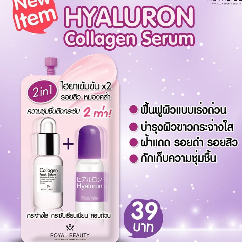 (กล่องx6ซอง) Royal Beauty Hyaluron Collagen Serum รอยัล บิวตี้ ไฮยาลูรอน คอลลาเจน เซรั่ม 8 กรัม