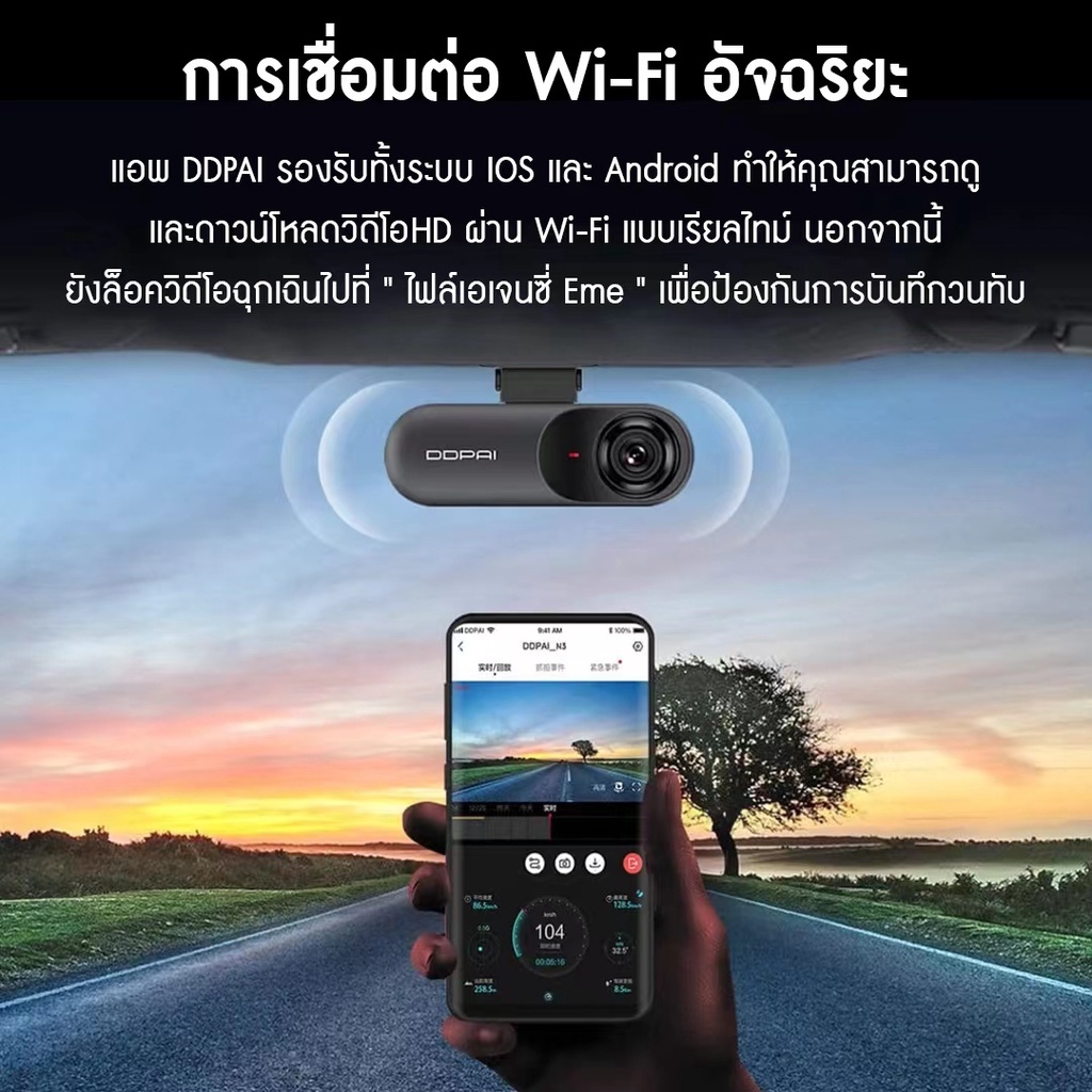 DDPAI Mola N3 GPS Dash Cam กล้องติดรถยนต์หน้า (1600P, มุมมอง 140°, F1.8, GPS) รับประกันศูนย์ไทย 1 ปี