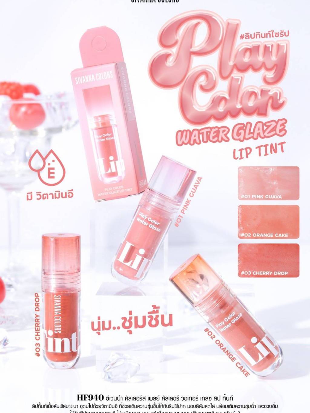 (🔥ของแท้/ส่งไว🔥) SIVANNA COLORS PLAY COLOR WATER GLAZE LIP TINT : HF 940 I ซีเวียน่า คัลเลอร์ส เพลย์ คัลเลอร์ วอเทอร์ เก