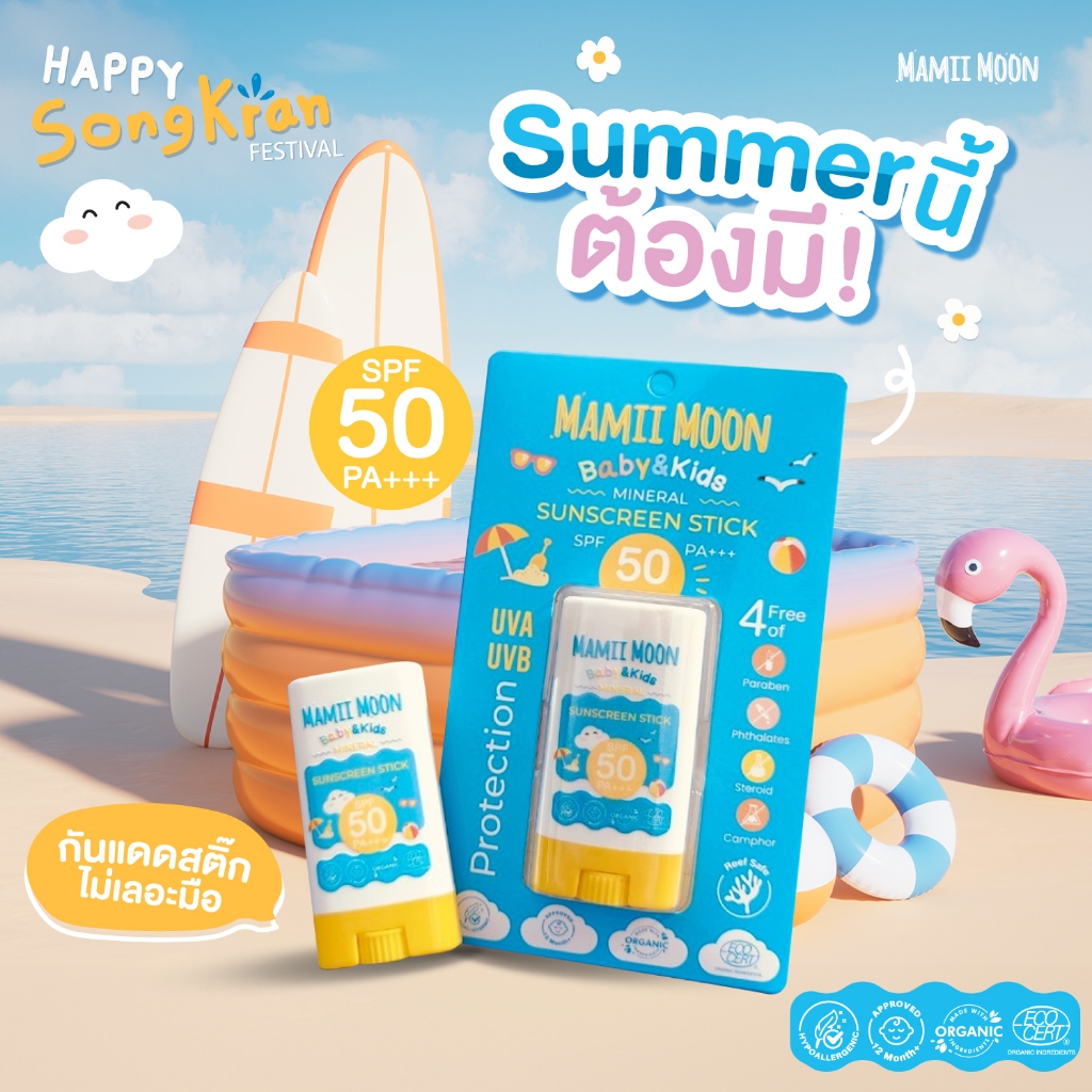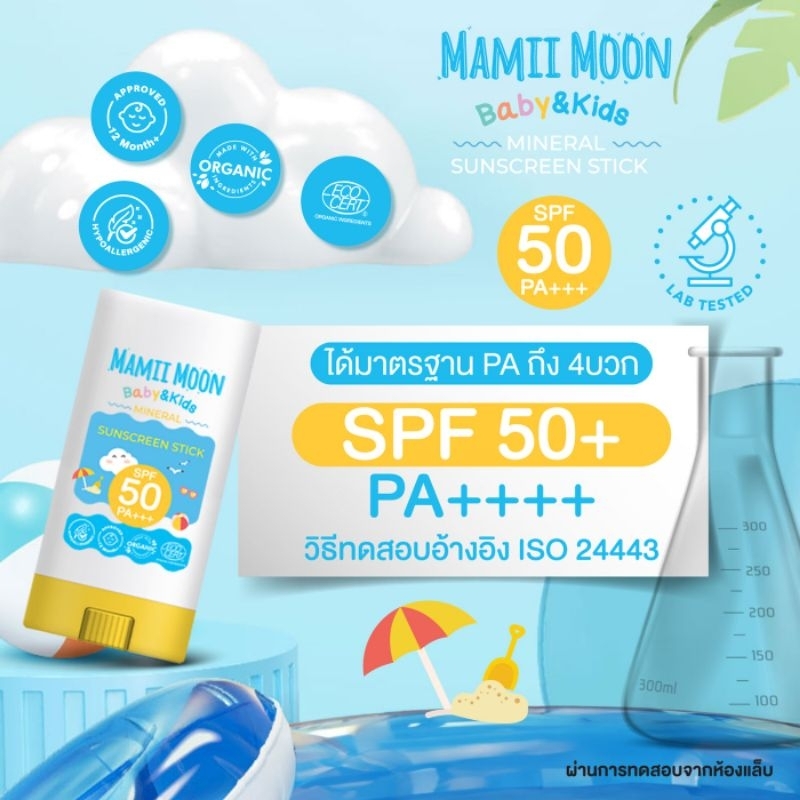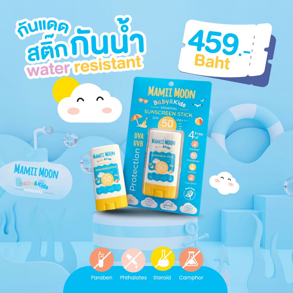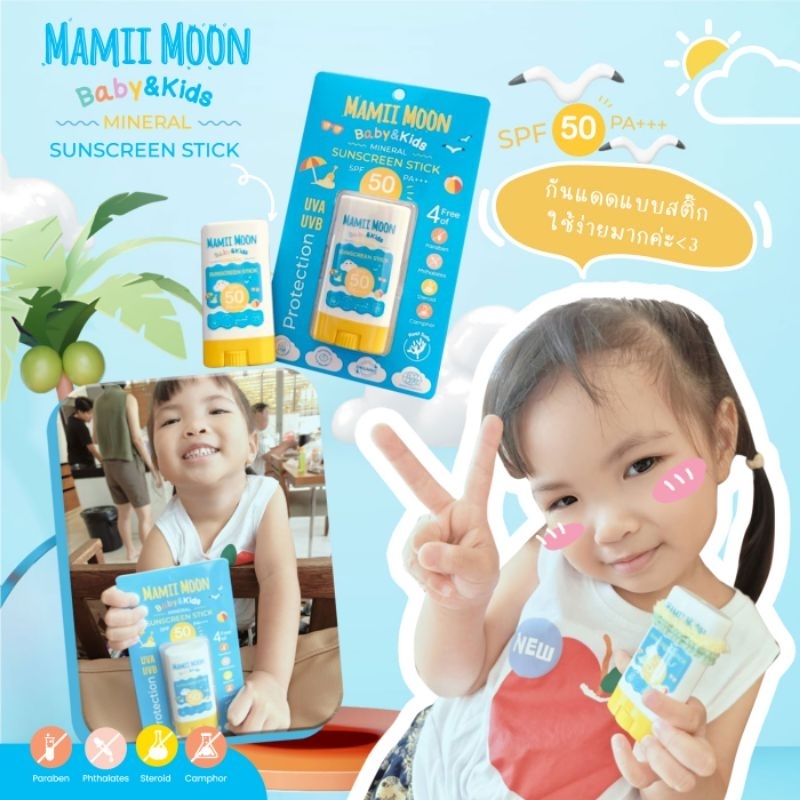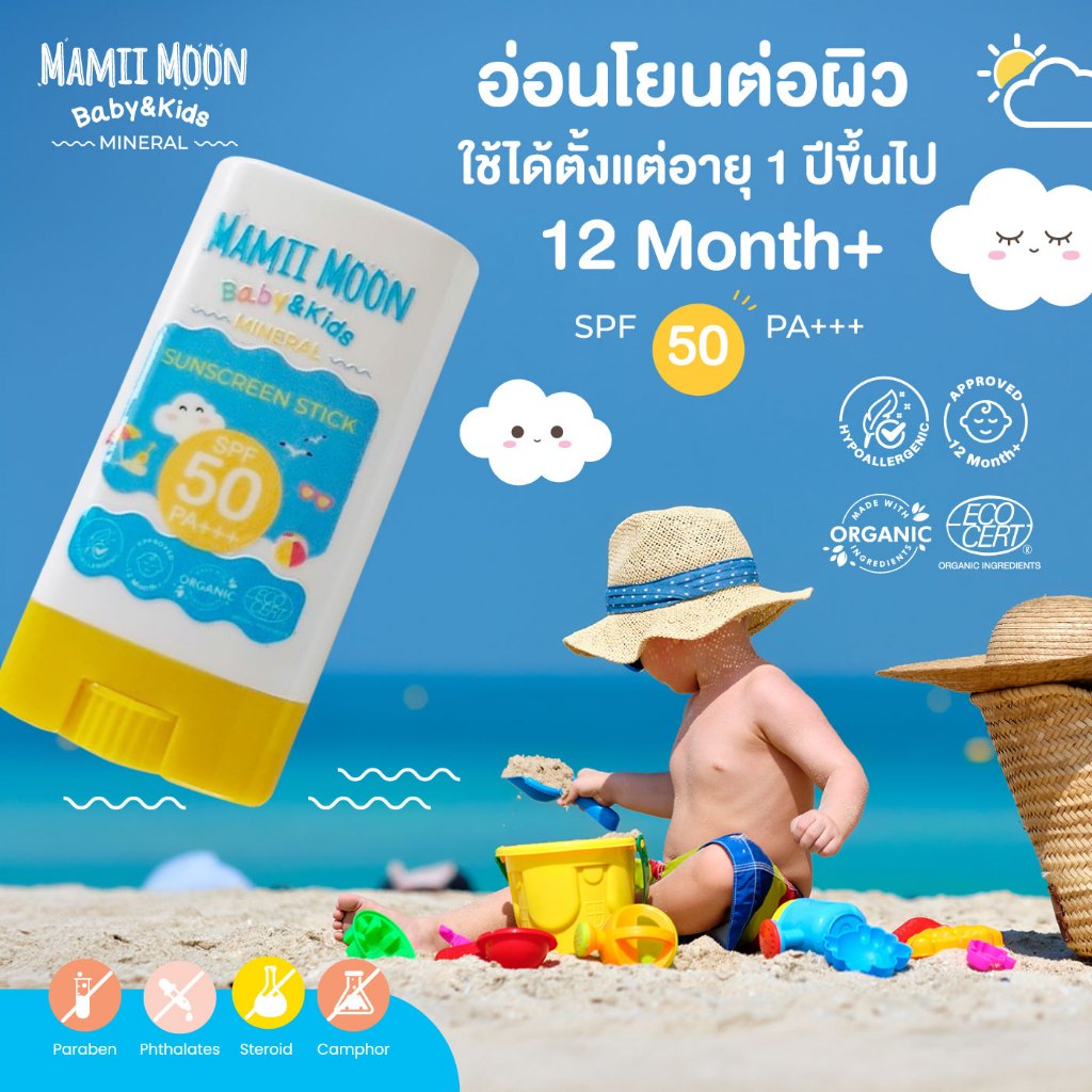 กันแดดเด็ก กันแดดแท่ง SUNSCREEN STICK SPF 50 PA+++ ออร์แกนิค กันน้ำ กันเหงื่อ Mamii Moon