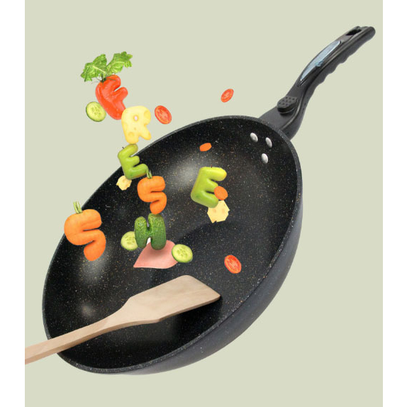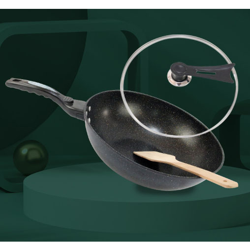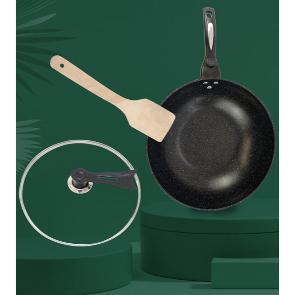ชุดกระทะ กระทะเคลือบ กระทะเคลือบหินอ่อน พร้อมฝาและตะหลิว 32CM