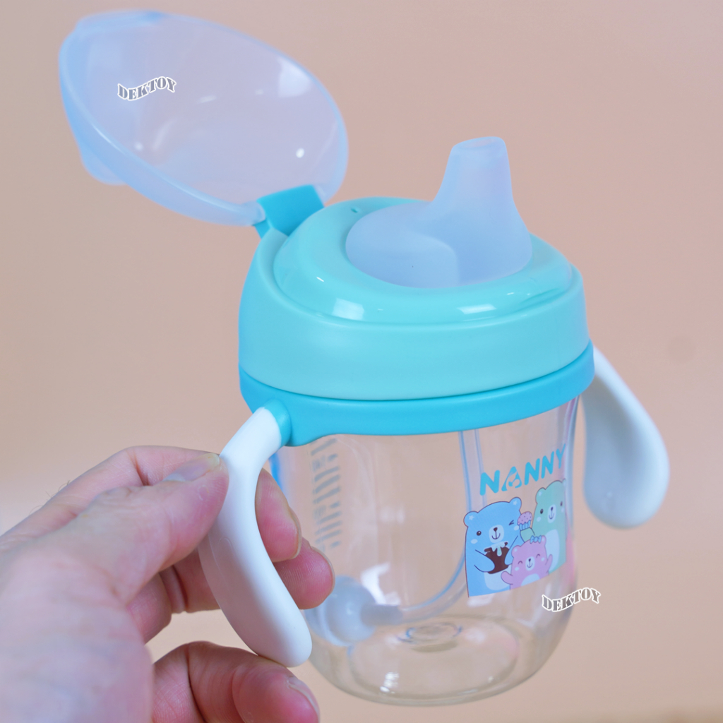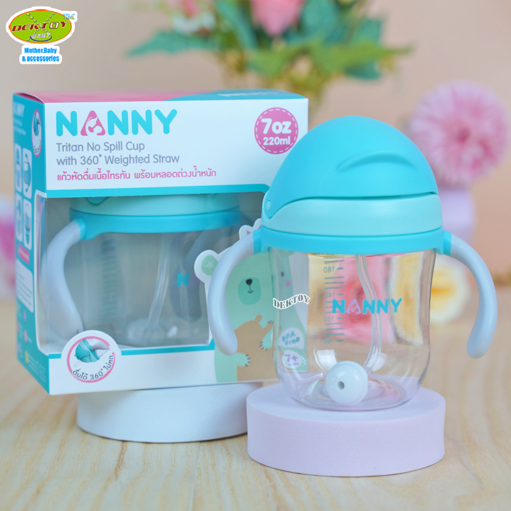Nanny แก้วหัดดื่ม Tritan ขนาด 7 ออนซ์ 220 มล. พร้อมหลอด/พร้อมจุก ดื่มได้ 360 องศา ทนทานมาก