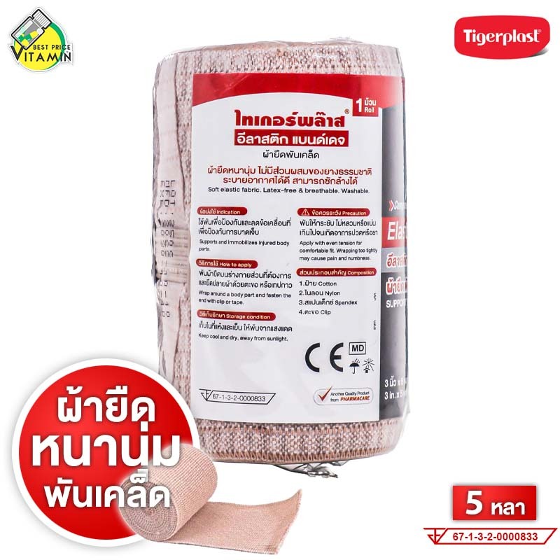 TigerPlast Elastic Bandage ไทเกอร์พล๊าส อีลาสติก แบนด์เดจ [สินค้ามีให้เลือก 3 ขนาด] ผ้ายืดพันเคล็ด ผ้าพันกระชับ