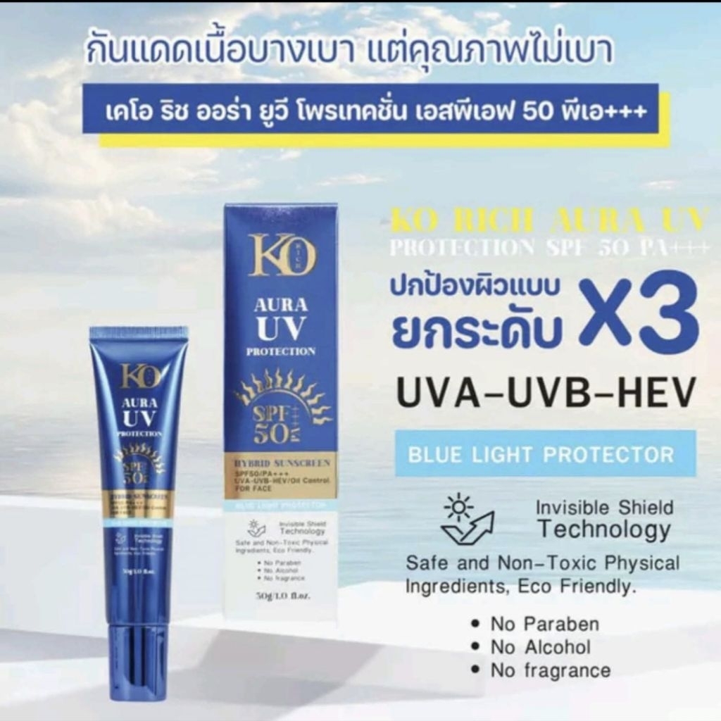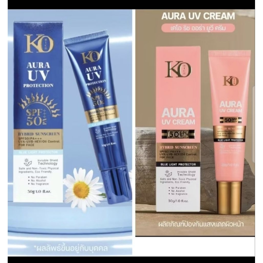 กันแดดหน้าหลอดชมพู / กันแดดหน้าหลอดน้ำเงินเคโอริช Aura UV SPF50 PA+++