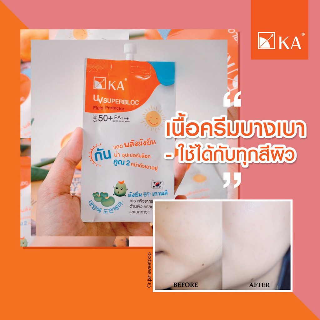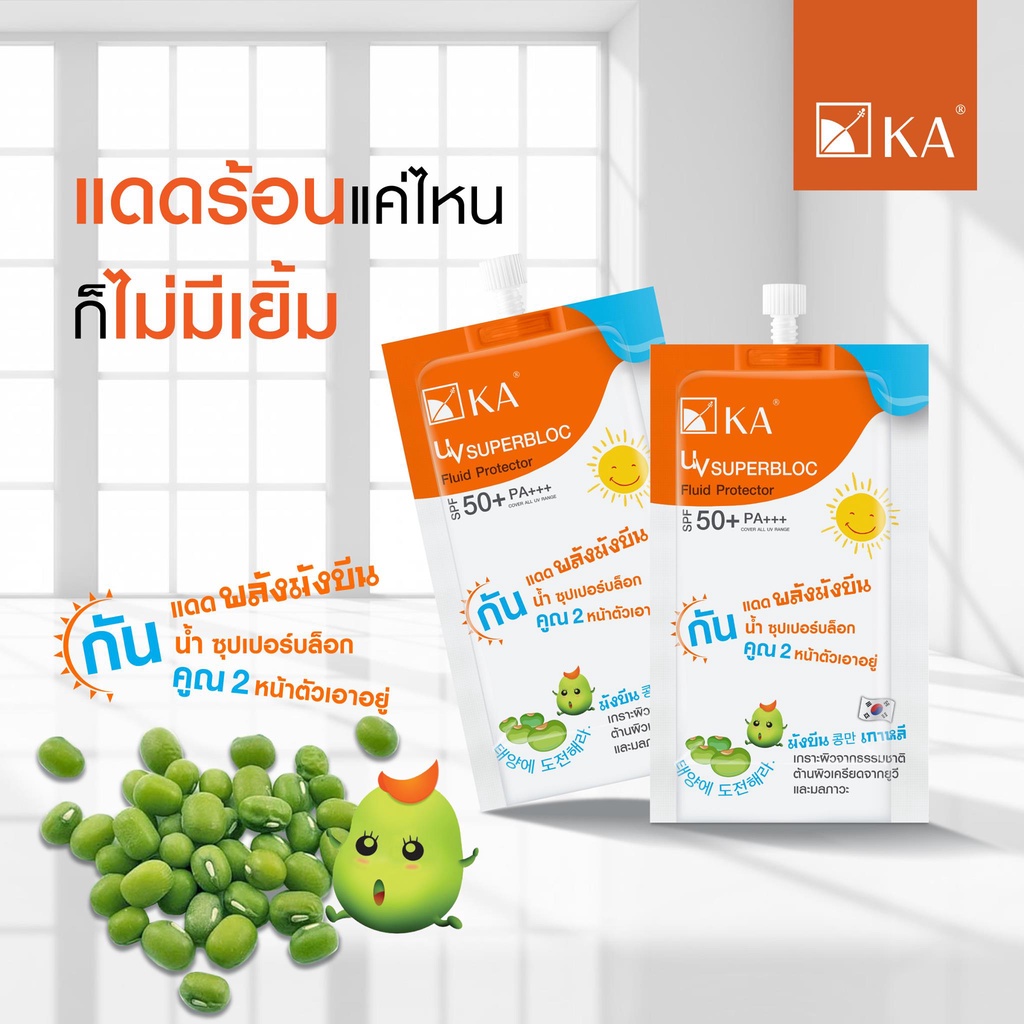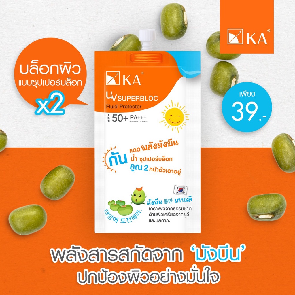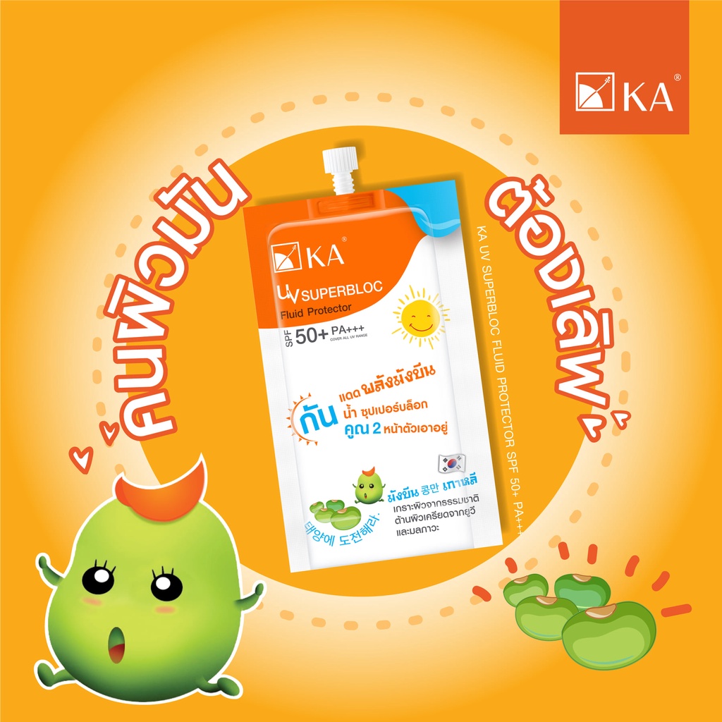 (กล่อง x6ซอง) KA เคเอ กันแดด ยูวี ซุปเปอร์บล็อก ฟลูอิด มังบีน UV Superbloc Fluid SPF50+ PA+++
