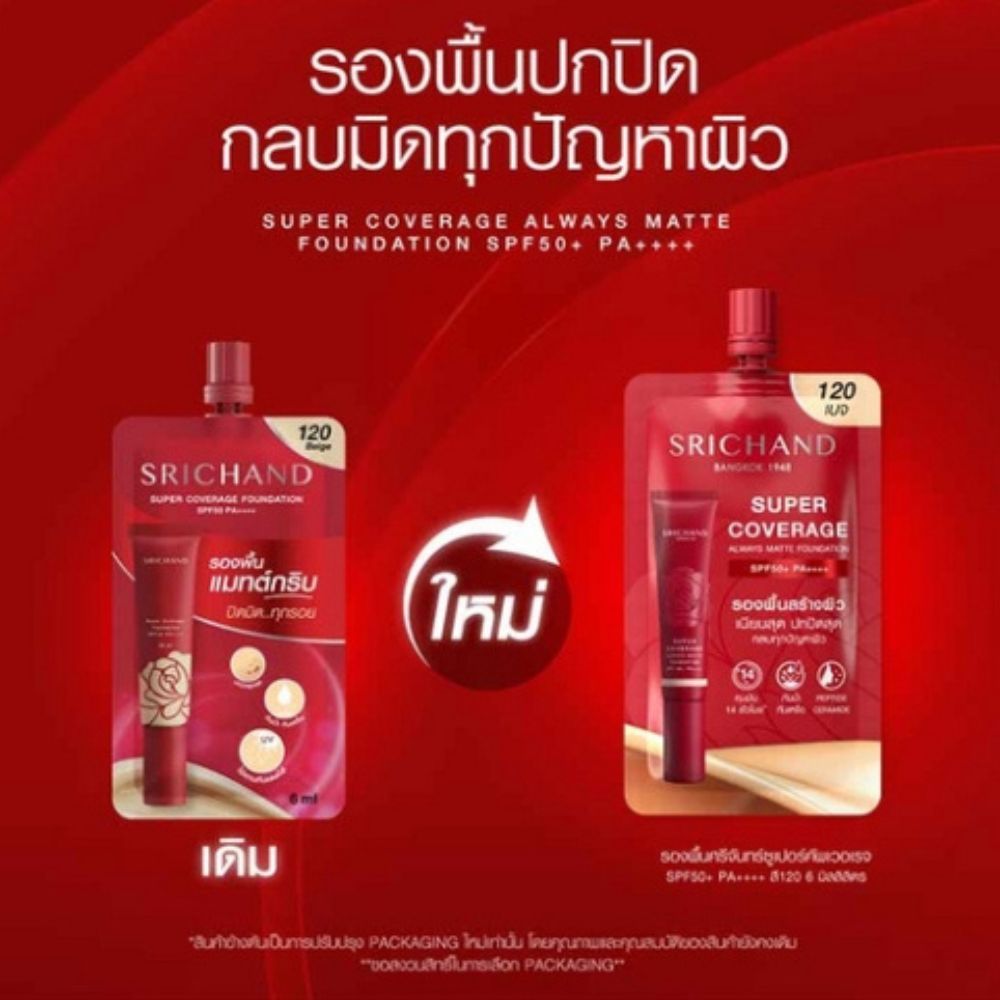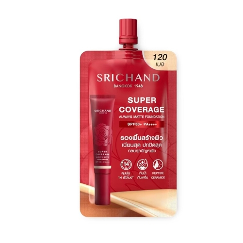 ศรีจันทร์ ซูเปอร์ คัฟเวอรเจ ฟาวน์เดชั่น แบบซอง 6 มล. รองพื้น แมทต์ SPF50 PA++++ ครีมรองพื้น