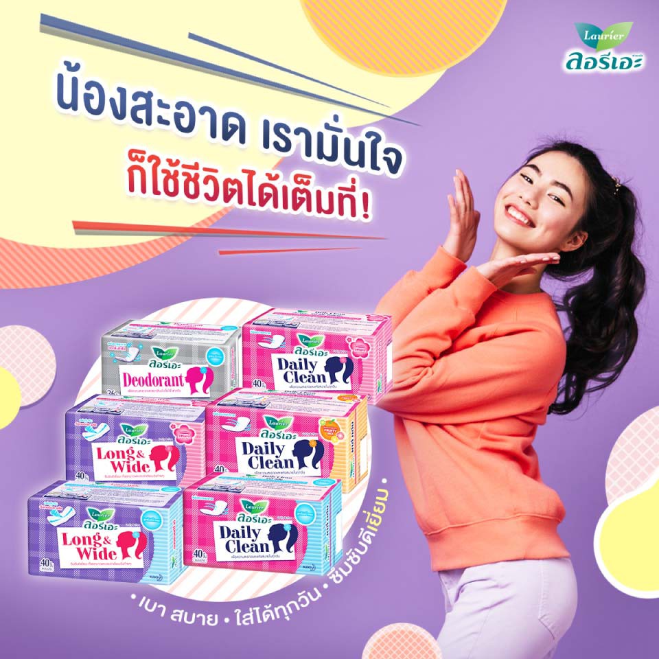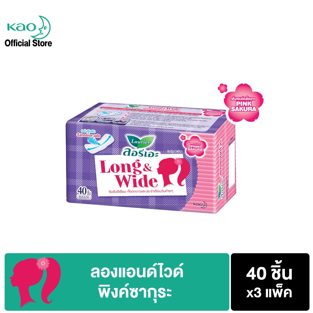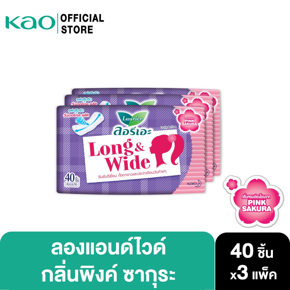 [แพ็ค3] ลอรีเอะ ลองแอนด์ไวด์ กลิ่นพิ้งค์ ซากุระ 40 ชิ้น Laurier PantyLiner แผ่นอนามัย,ซึมซับตกขาว,สะอาดทุกวัน,กางเกงใน
