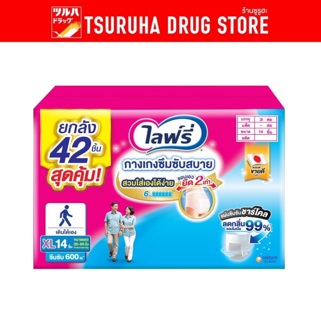 ไลฟ์รี่ กางเกงซึมซับสบาย ขนาด XL 14 ชิ้น (1x3 ห่อ ยกลัง)/Lifree LP XL 14 pcs (1x3)