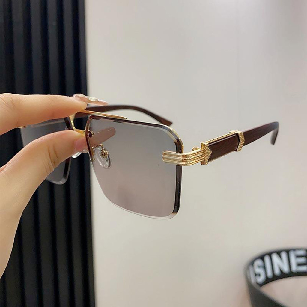 แว่นตากันแดดสําหรับผู้ชาย High-End Square Gradient Half-Frame กรอบใหญ่ Diamond-Cut Edge แว่นตากันแดดวัด