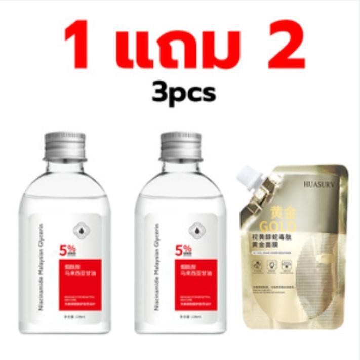 【ซื้อ 1แถม 2】NiacinamideMalaysianGlycerin120mlติดทนนานสบายตัวSkincare สกินแคร์HUASURVมาส์กลอกหน้าทองคำ+มาส์กหน้าคอลลาเจน