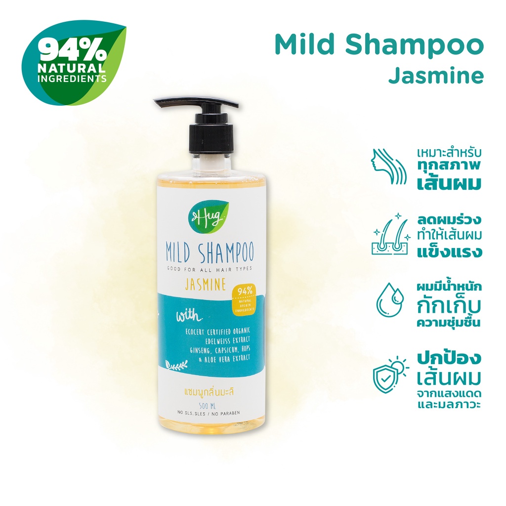 Hug ฮัก แชมพูสูตรอ่อนโยน กลิ่นมะลิ Mild Shampoo Jasmine (500ml)