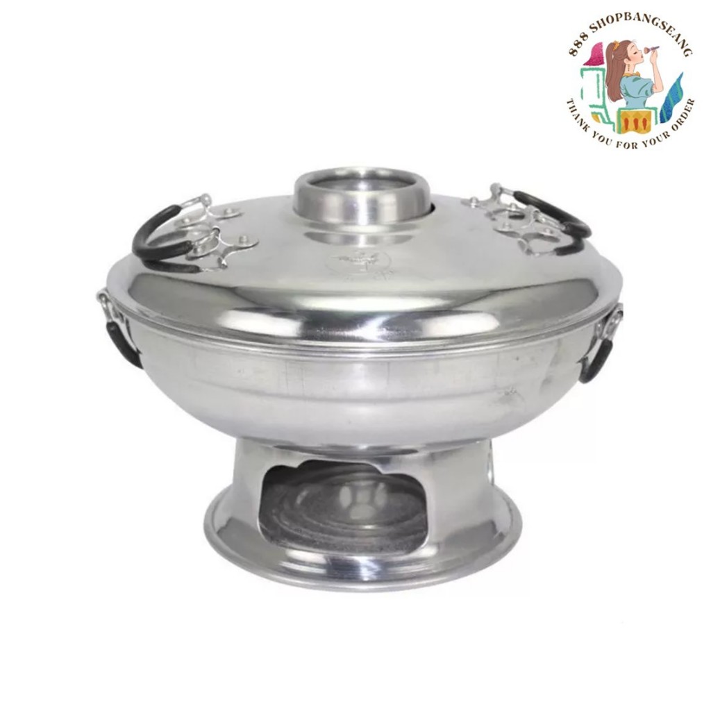 (1ใบ) หม้อไฟอลูมิเนียม มีปล่อง หม้อไฟมีฝา ตรานก