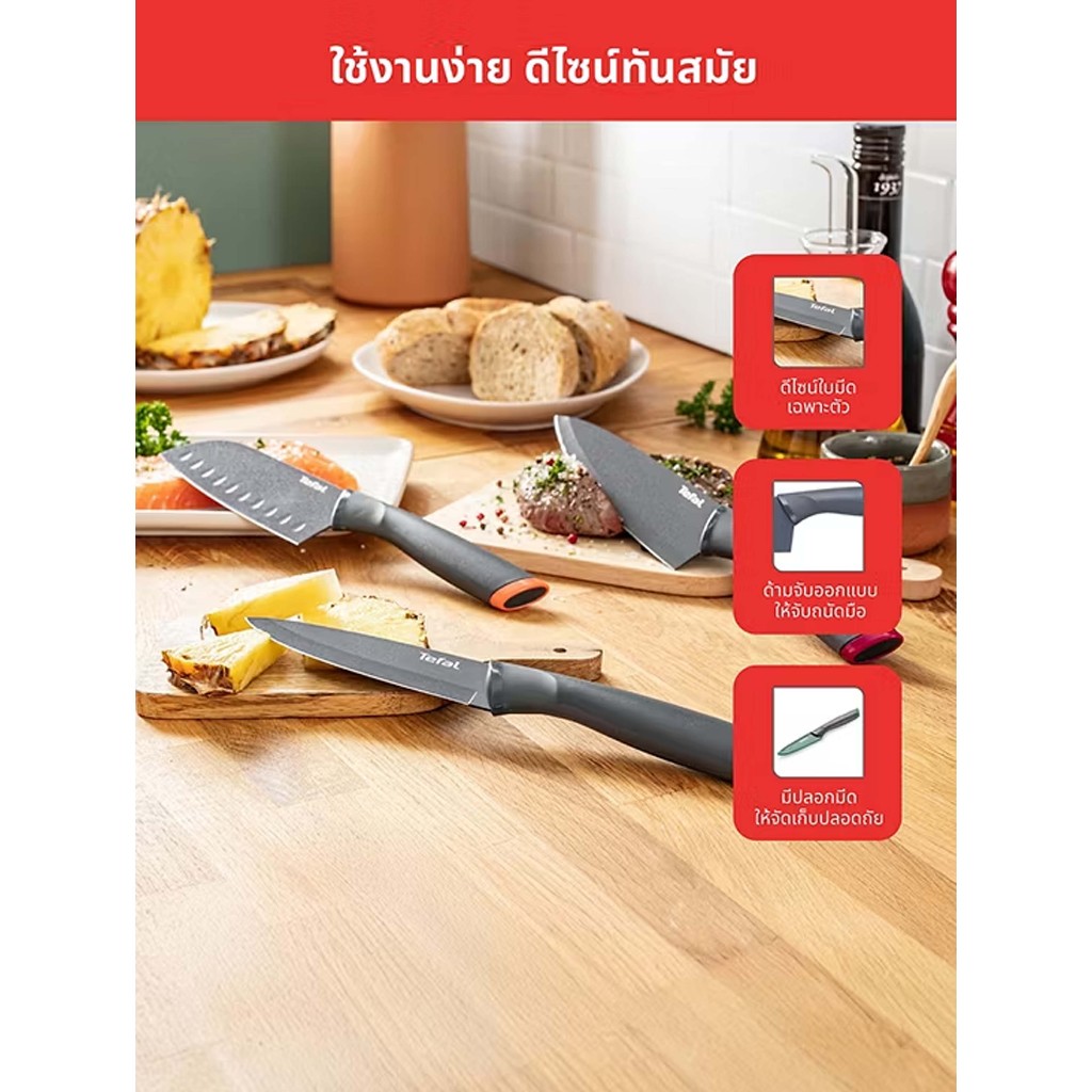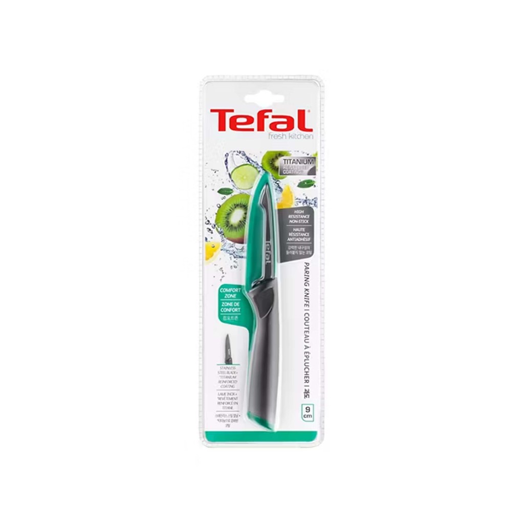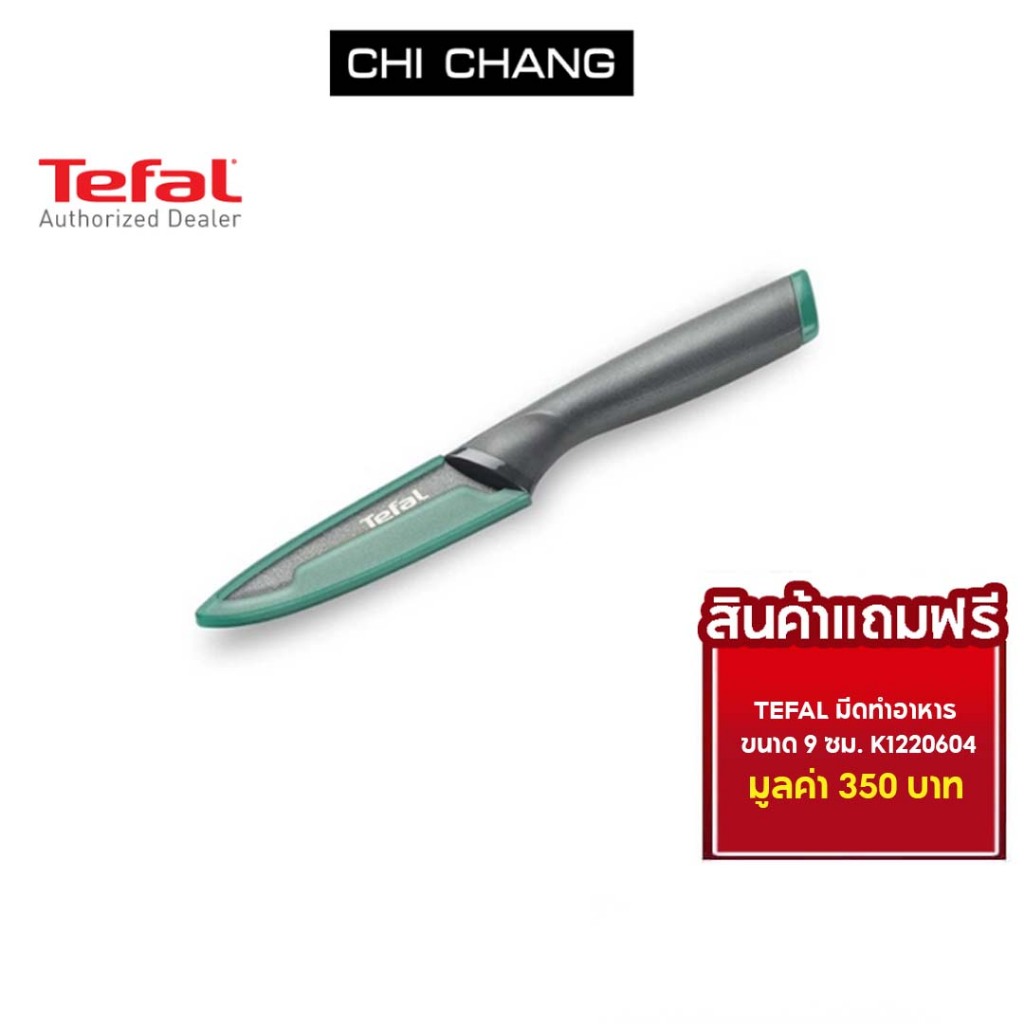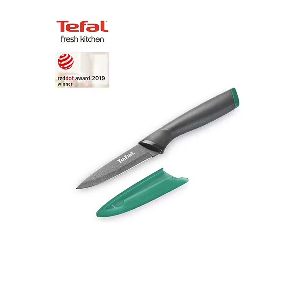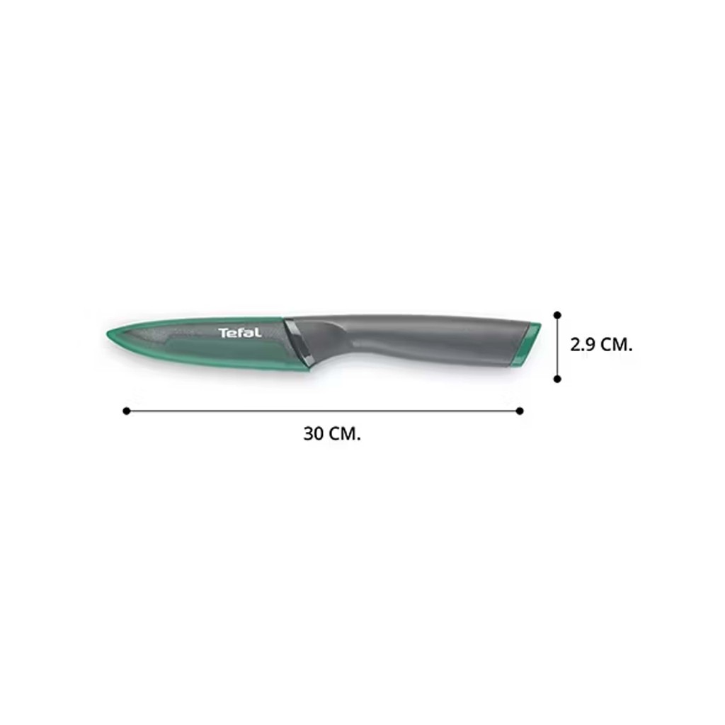 (สินค้าแถมฟรี) TEFAL มีดทำอาหาร พร้อมปลอกมีด ขนาด 9 ซม. Fresh Kitchen K1220604 สีเทา/เขียว