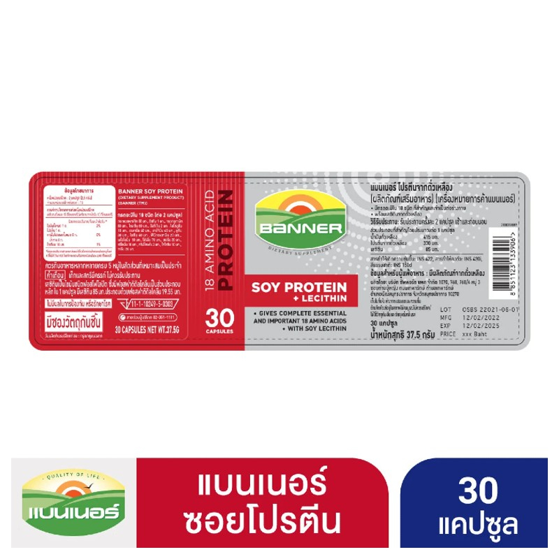 แบนเนอร์ โปรตีน แคปซูล 30 เม็ด Banner Soy Protein+Lecithin Capsule