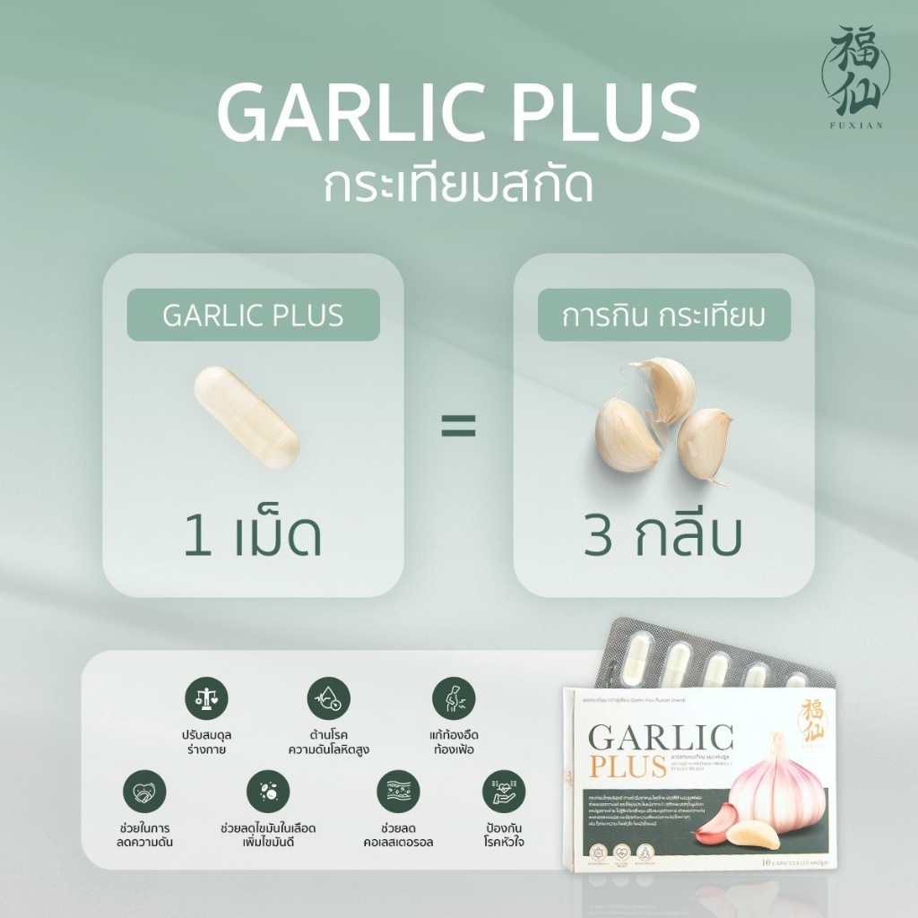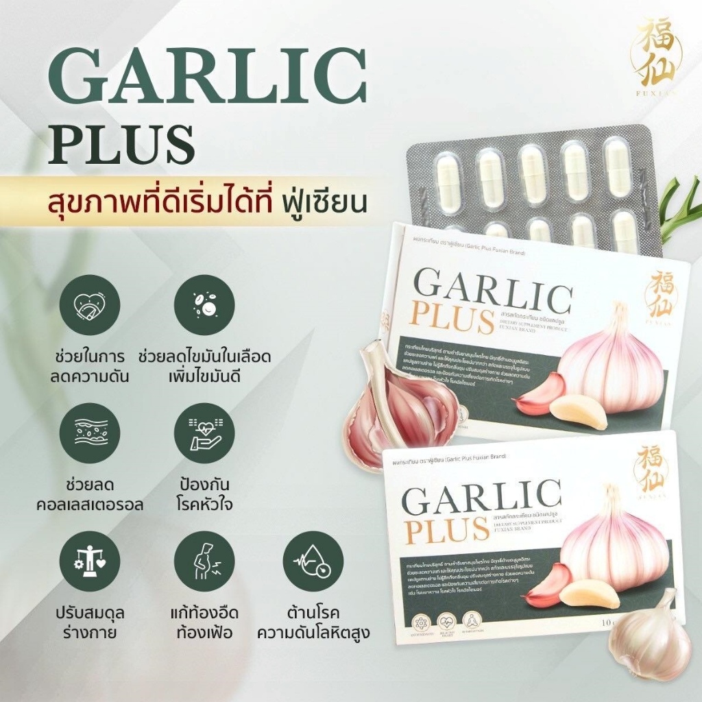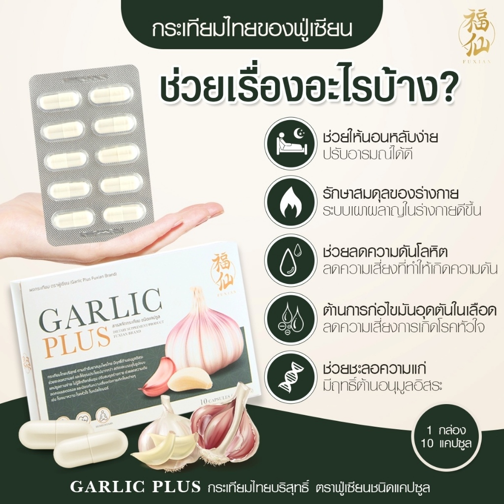 Fuxian Garlic Plus ฟู่เซียน กาลิก พลัส [กระเทียม - 10 แคปซูล] กระเทียมไทยสกัด แบบแคปซูล ทานง่าย กลิ่นไม่ฉุน ลดไขมันร้าย