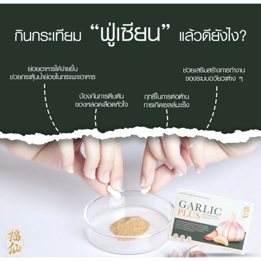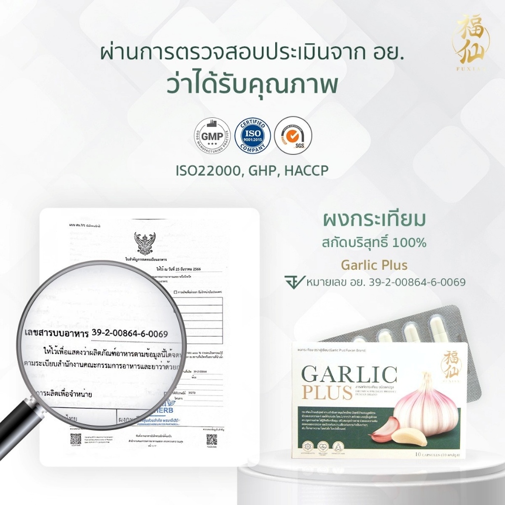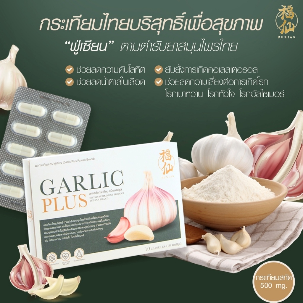 Fuxian Garlic Plus ฟู่เซียน กาลิก พลัส [กระเทียม - 10 แคปซูล] กระเทียมไทยสกัด แบบแคปซูล ทานง่าย กลิ่นไม่ฉุน ลดไขมันร้าย